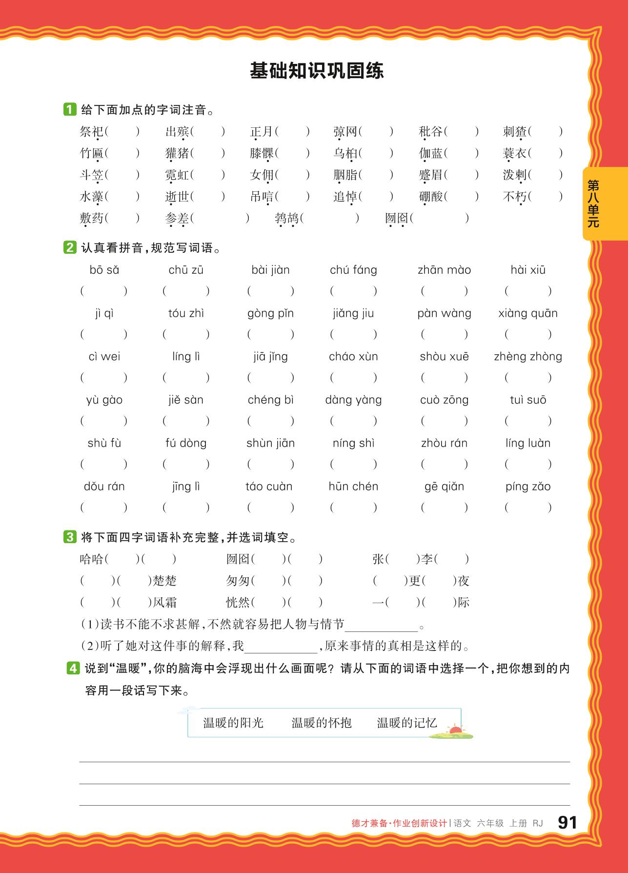2024秋上册六年级语文人教版 第八单元 走近鲁迅——基础知识巩固练