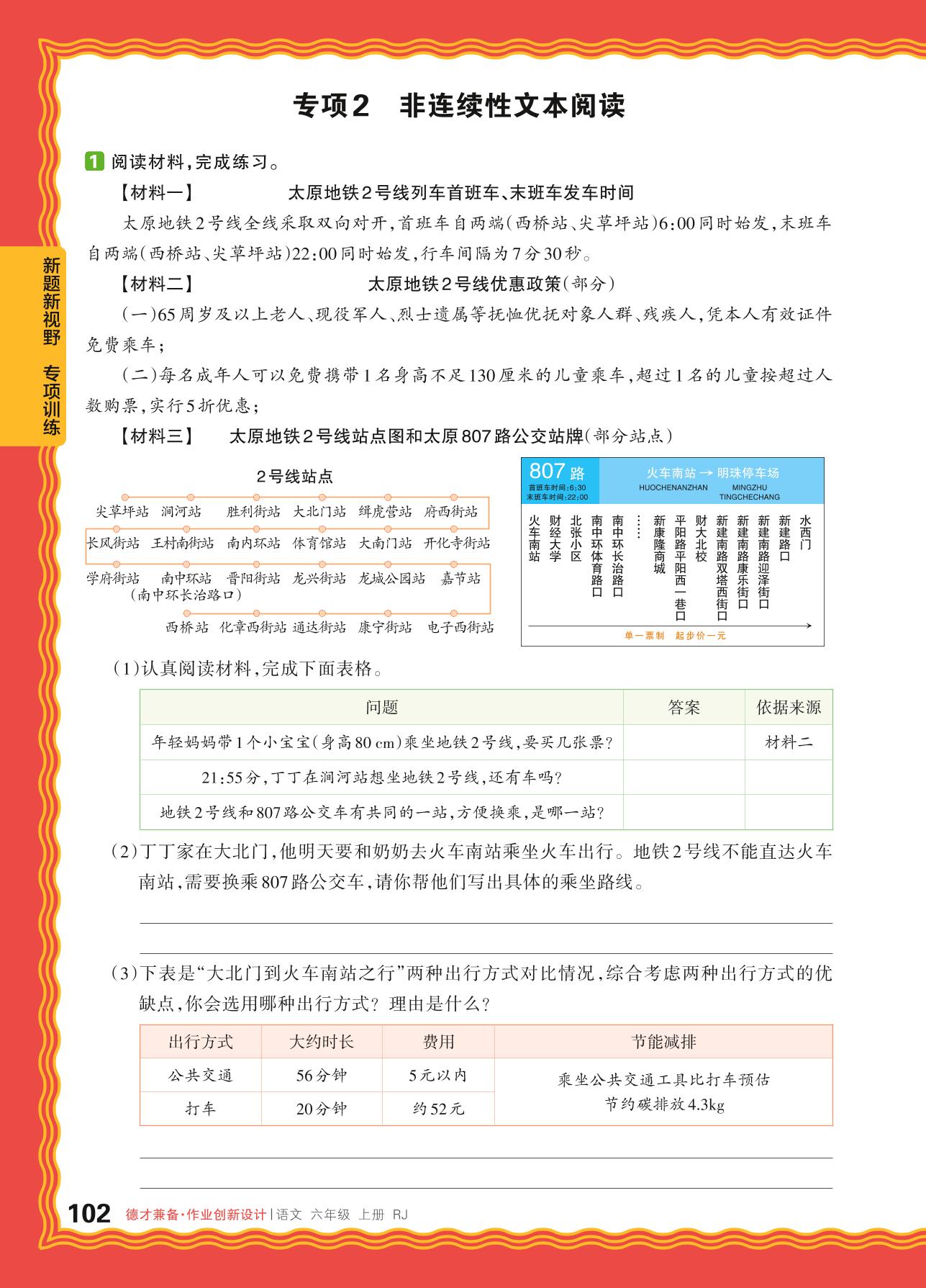 2024秋上册六年级语文人教版 新题新视野 专项训练——非连续性文本阅读【2】