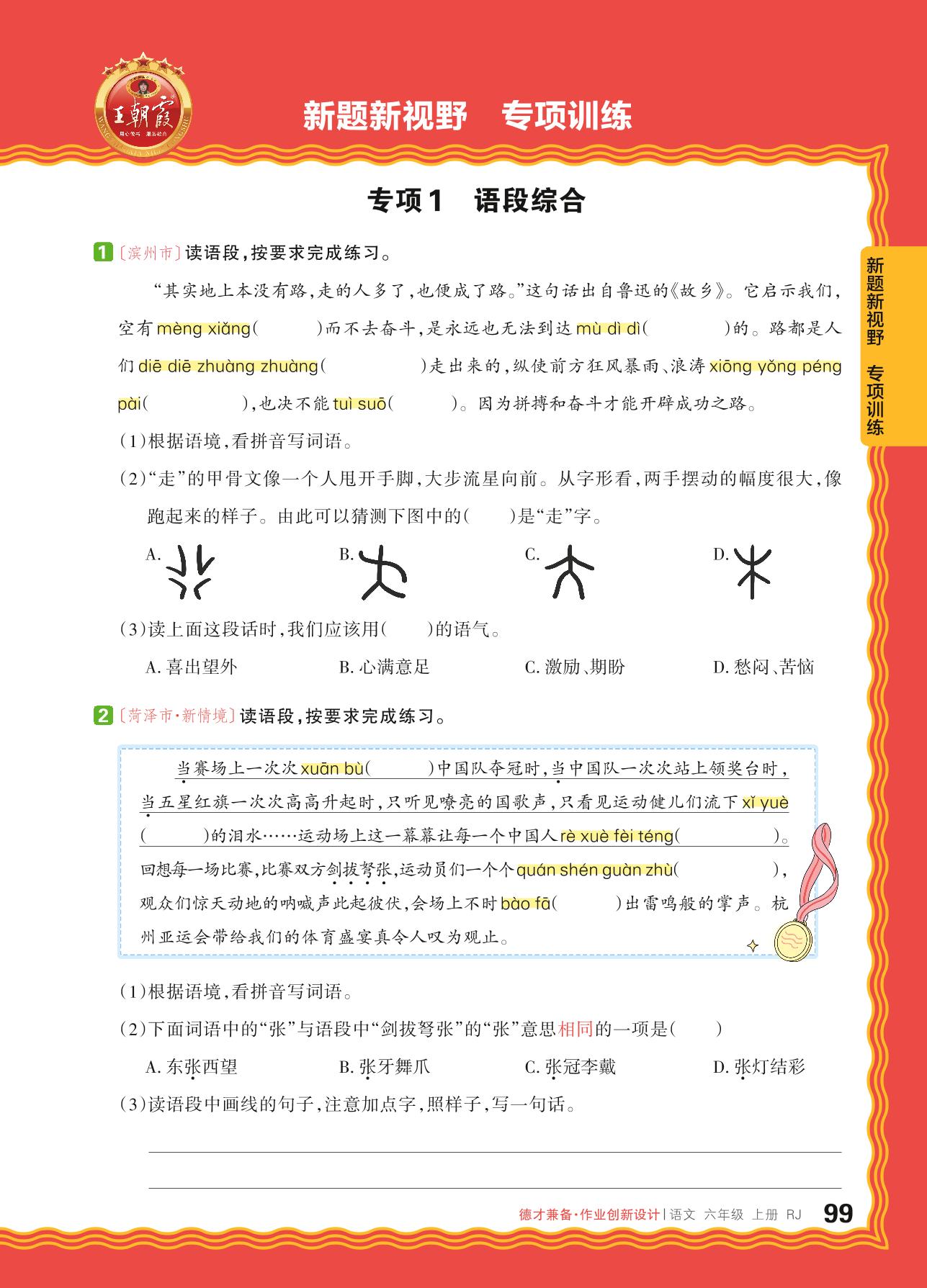 2024秋上册六年级语文人教版 新题新视野 专项训练——语段综合【1】