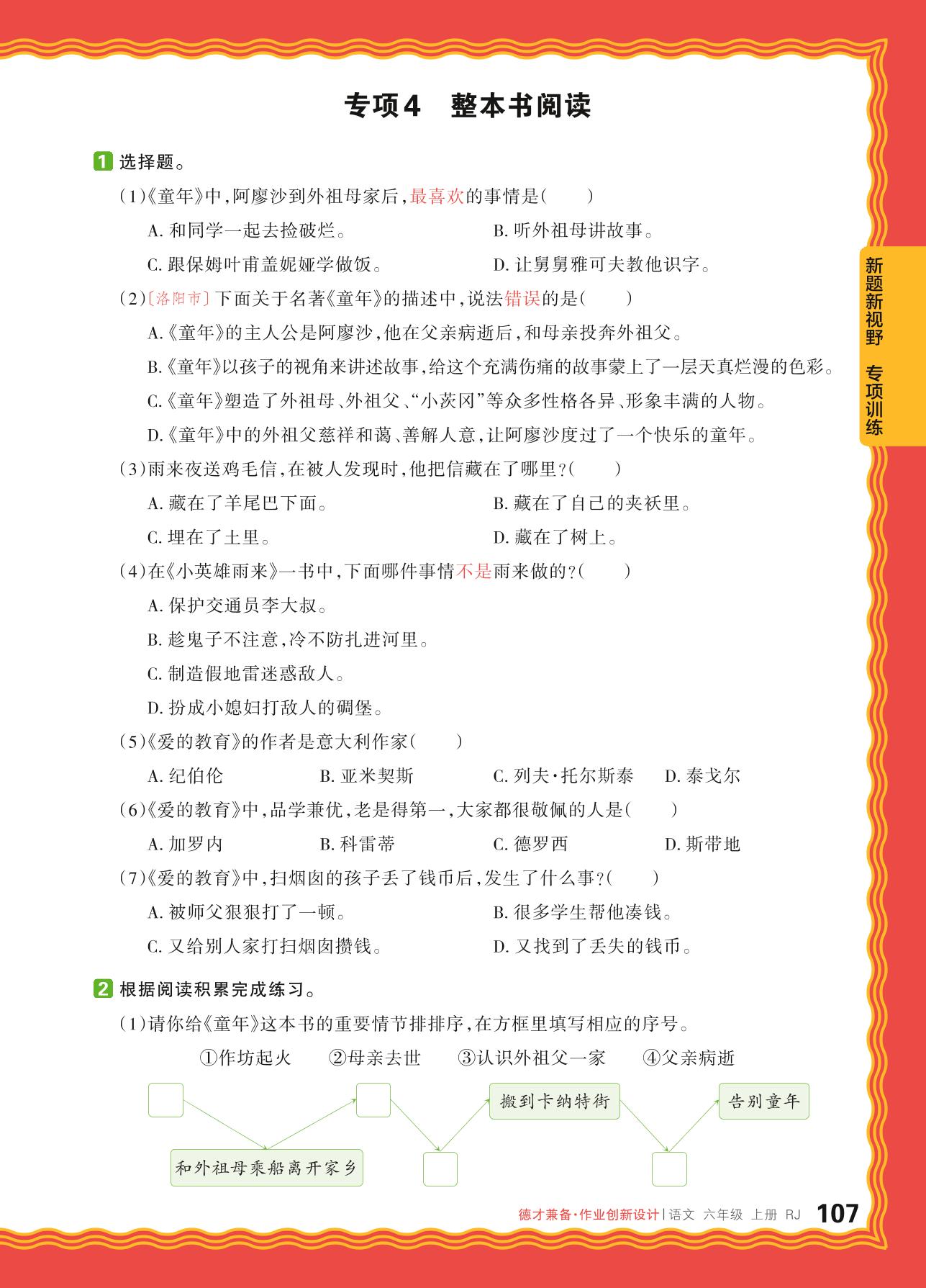 2024秋上册六年级语文人教版 新题新视野 专项训练——整本书阅读【4】