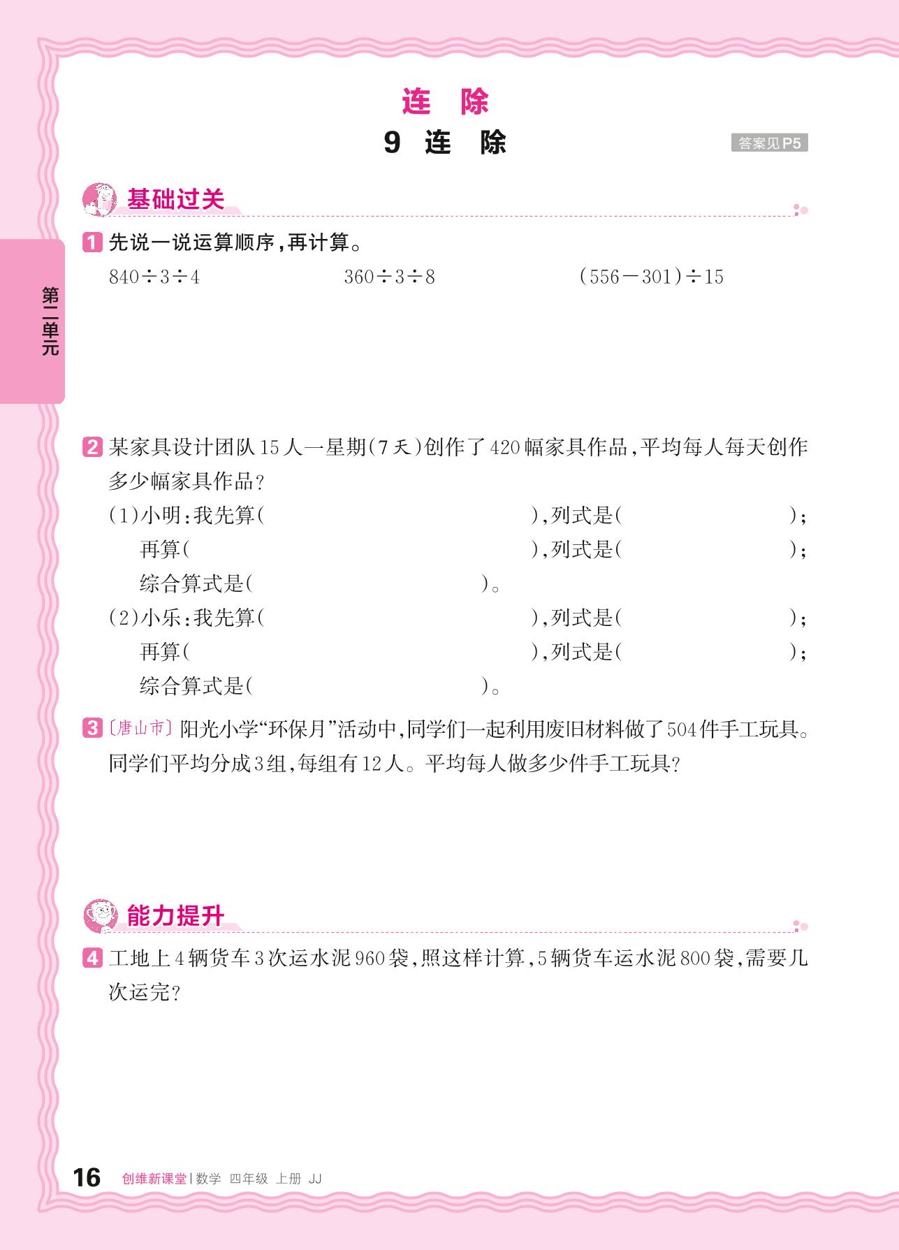 2024秋上册四年级数学冀教版 第二单元 三位数除以两位数——9. 连除