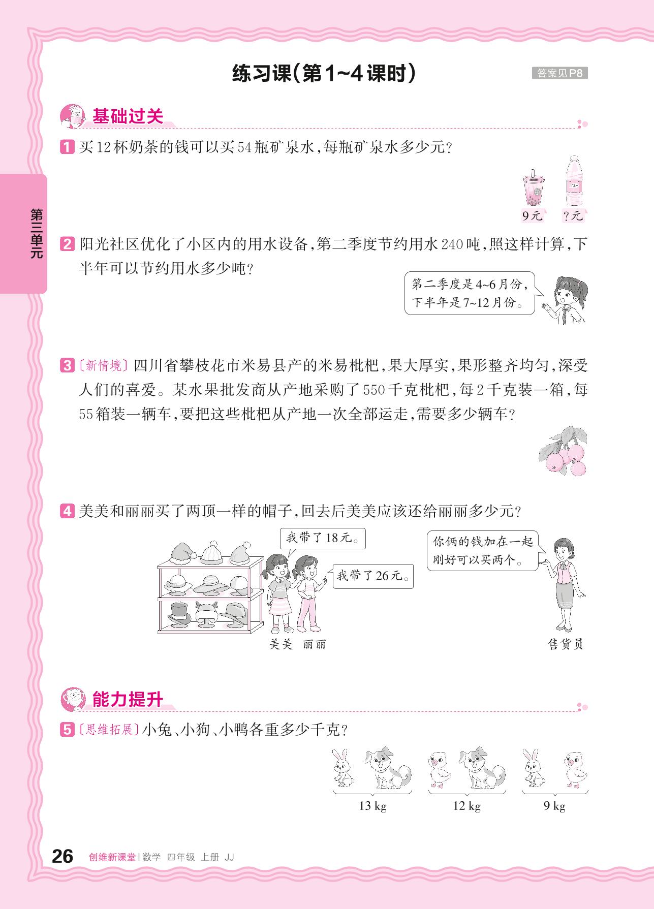 2024秋上册四年级数学冀教版 第三单元 解决问题练习课