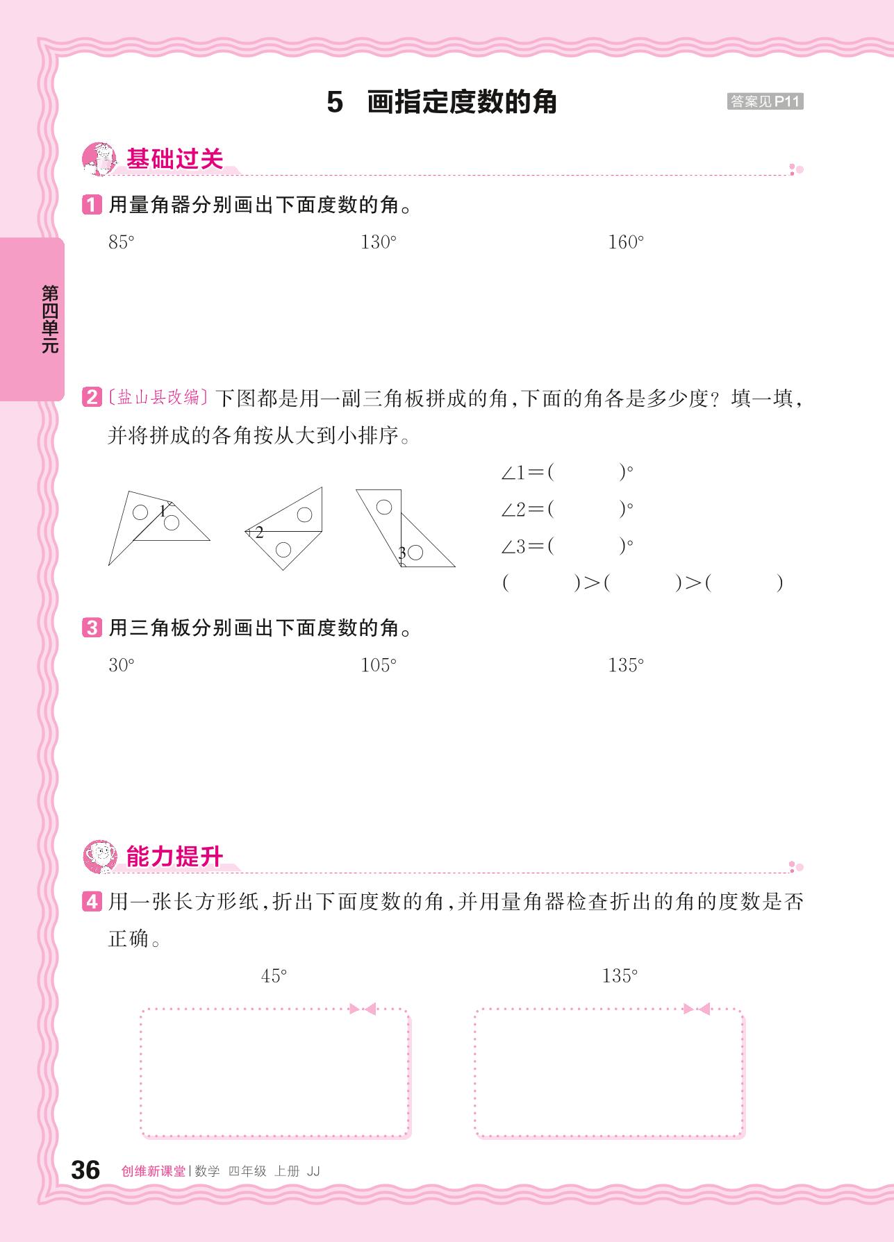 2024秋上册四年级数学冀教版 第四单元 线和角——5. 画指定度数的角