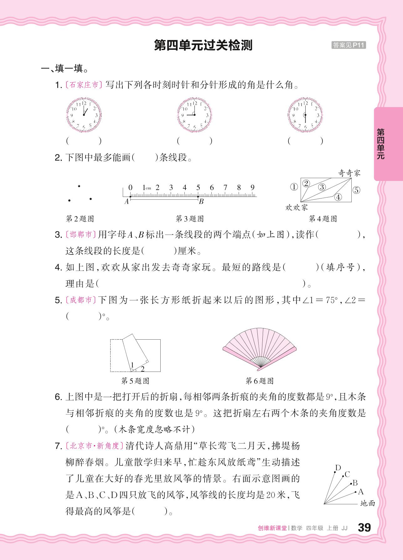 2024秋上册四年级数学冀教版 第四单元过关检测