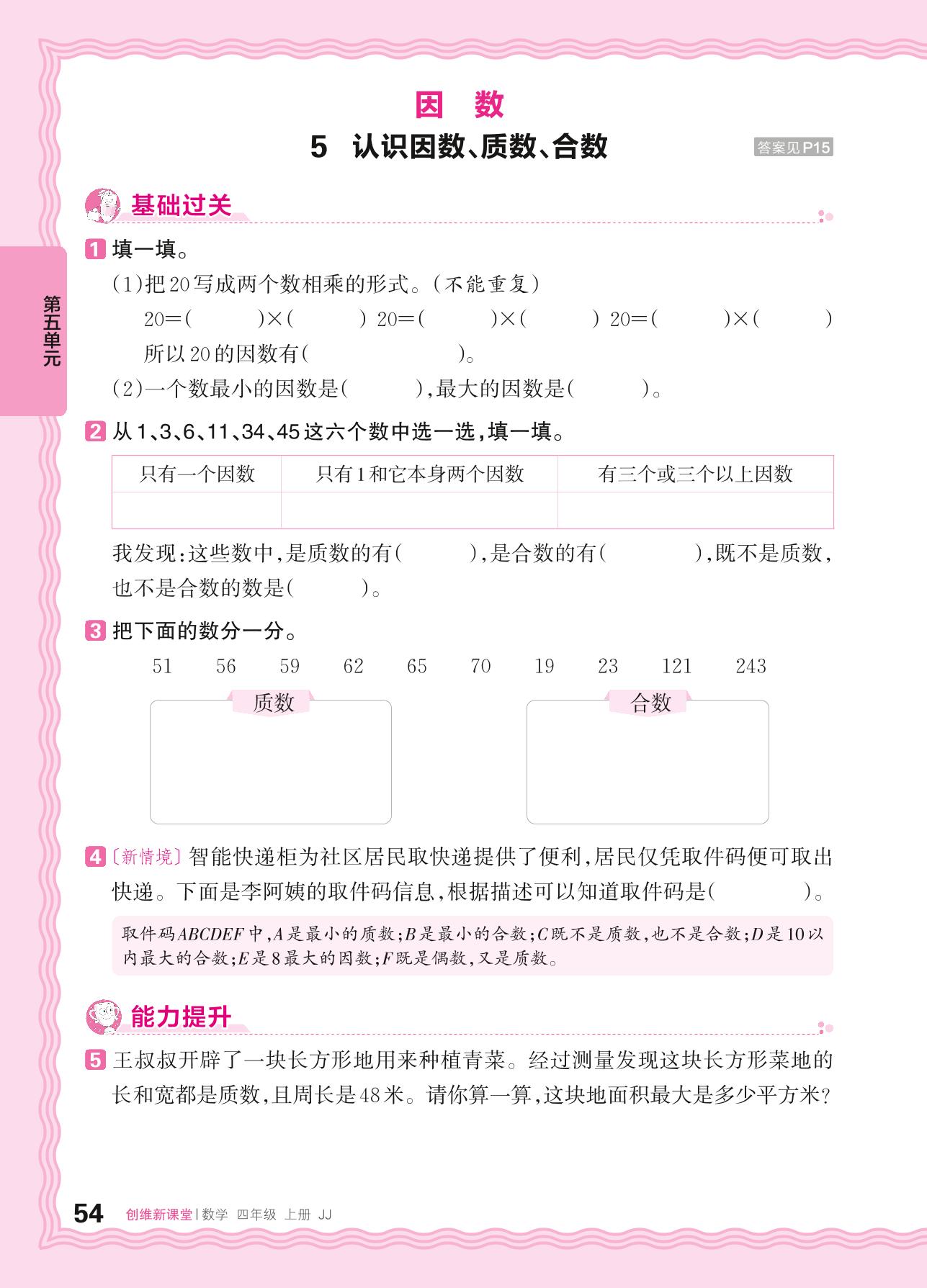 2024秋上册四年级数学冀教版 第五单元 倍数和因数——5. 认识因数、质数、合数