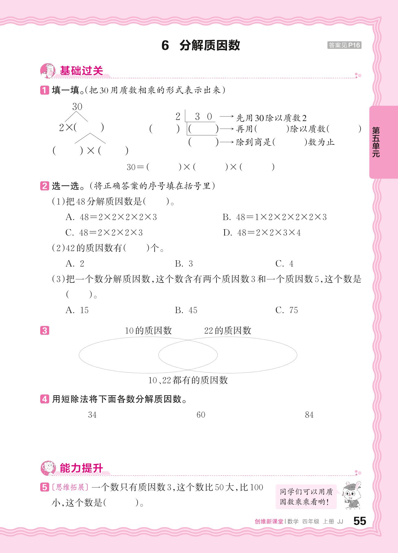 2024秋上册四年级数学冀教版 第五单元 倍数和因数——6. 分解质因数