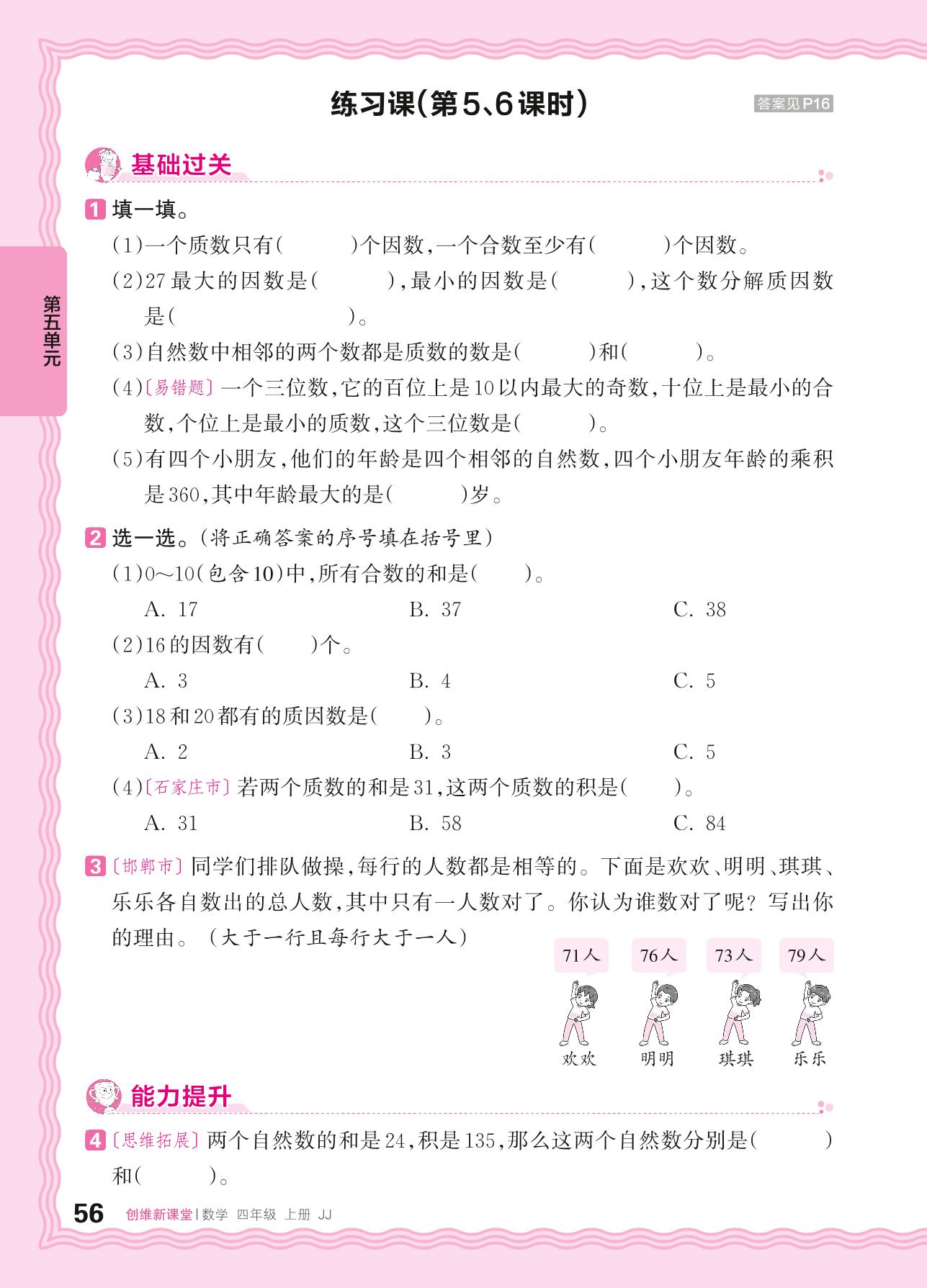 2024秋上册四年级数学冀教版 第五单元 倍数和因数——因数练习课
