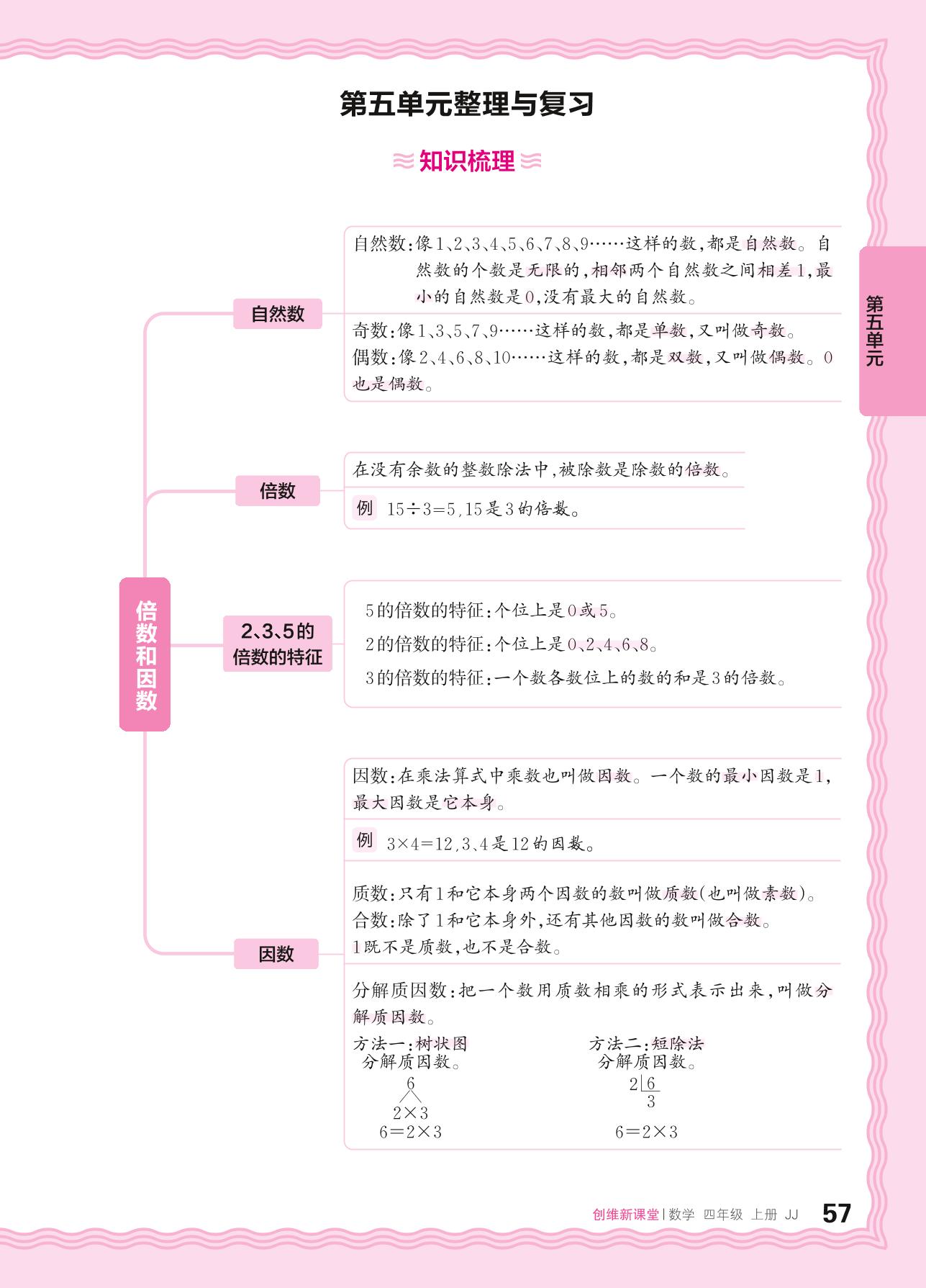 2024秋上册四年级数学冀教版 第五单元整理与复习