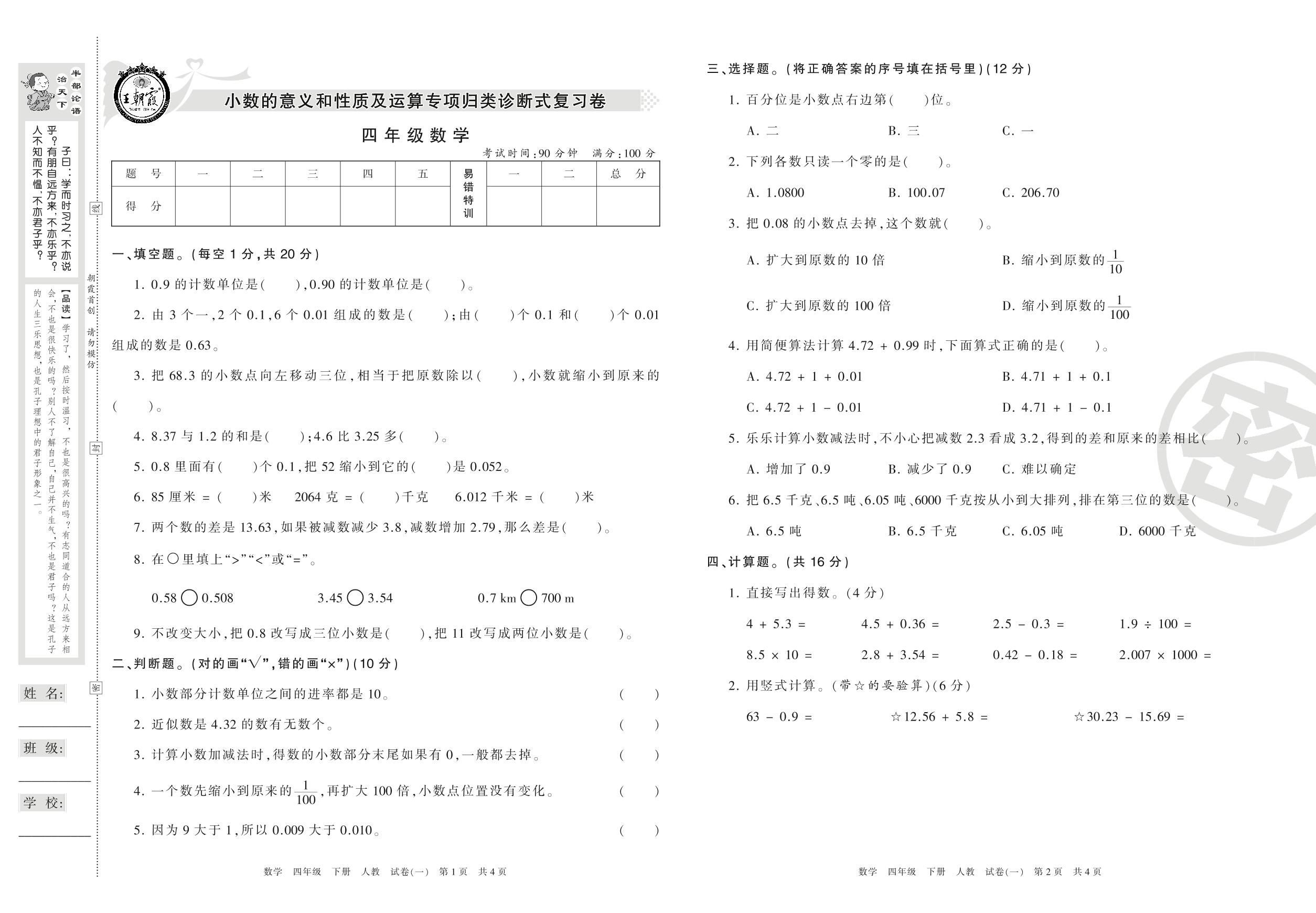 王朝霞期末专项卷四年级下册数学(人教版)_R210804152458【1】