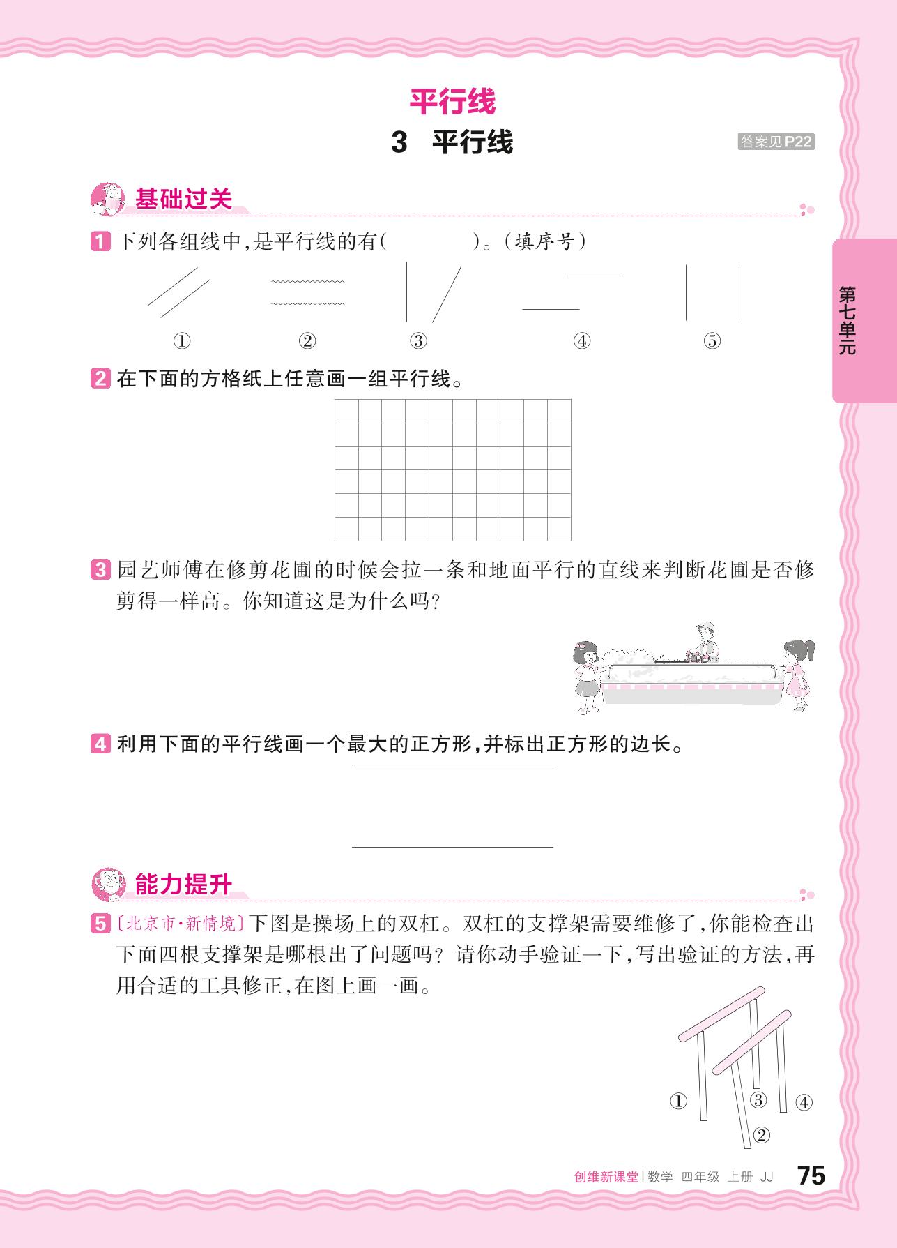 2024秋上册四年级数学冀教版 第七单元 垂线和平行线——3. 平行线