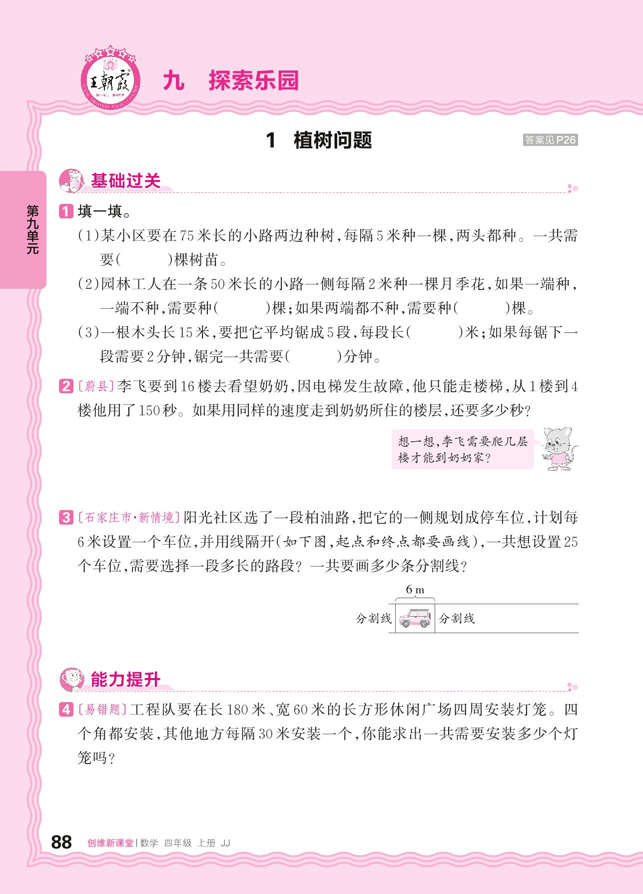 2024秋上册四年级数学冀教版 第九单元 探索乐园——1. 植树问题