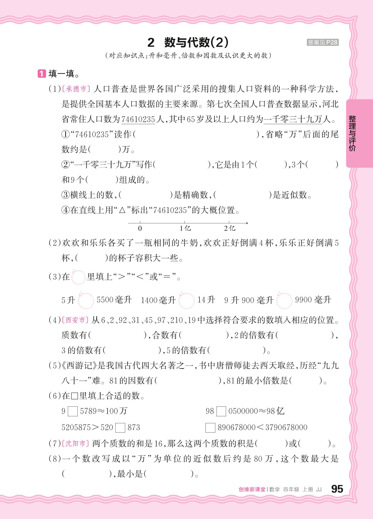 2024秋上册四年级数学冀教版 整理与评价(知识与技能)——2. 数与代数(2)