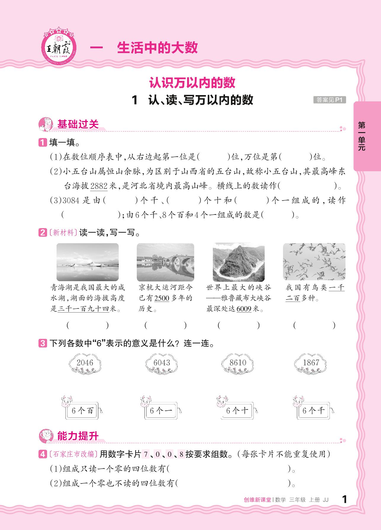 2024秋上册三年级数学冀教版 第一单元 生活中的大数——1. 认、读、写万以内的数