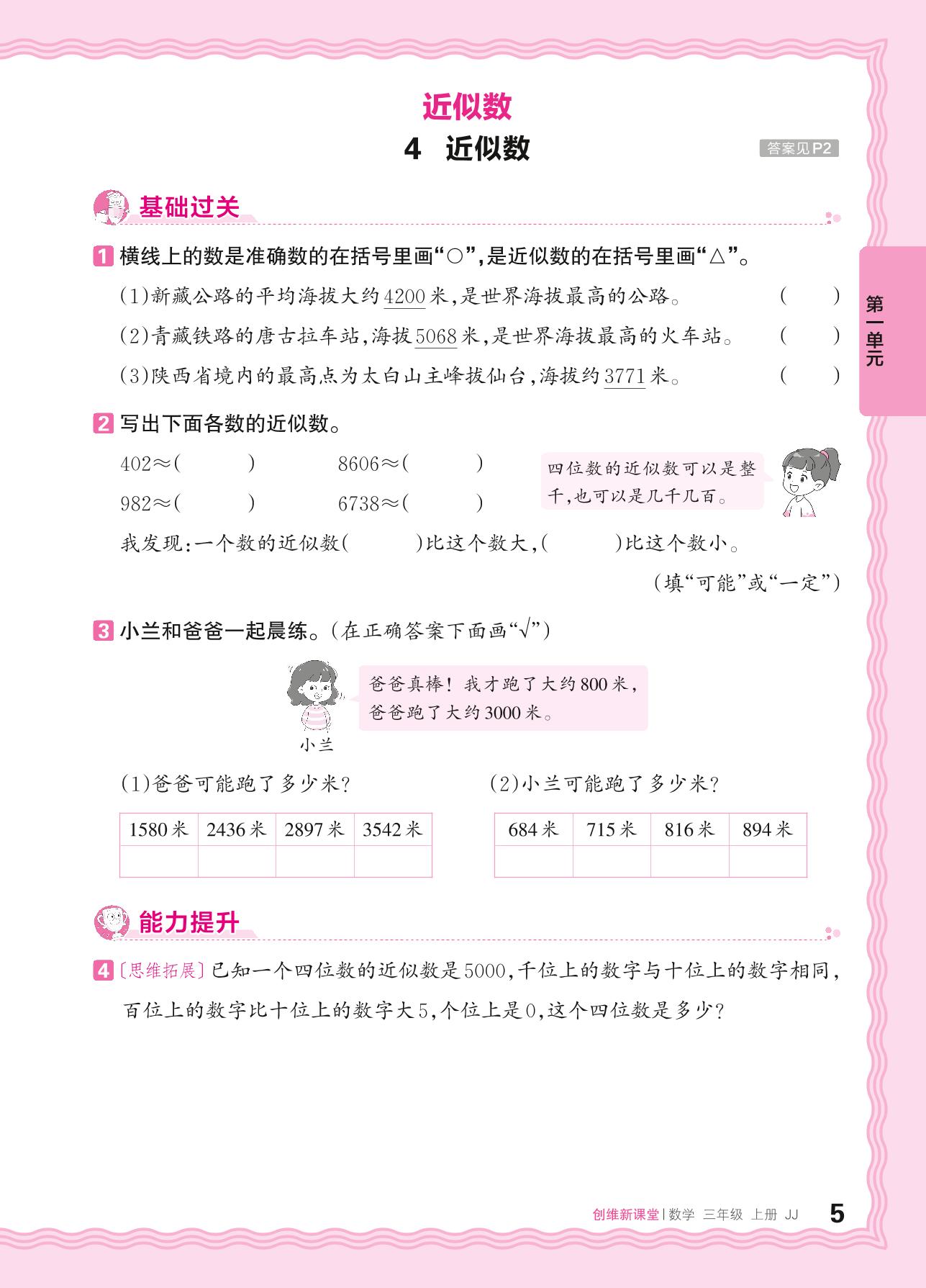 2024秋上册三年级数学冀教版 第一单元 生活中的大数——4. 近似数