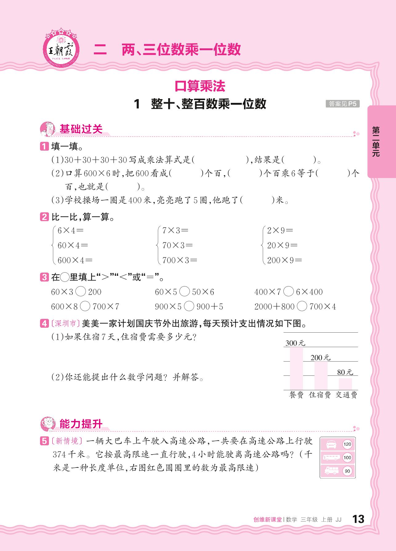 2024秋上册三年级数学冀教版 第二单元 两、三位数乘一位数——1. 整十、整百数乘一位数