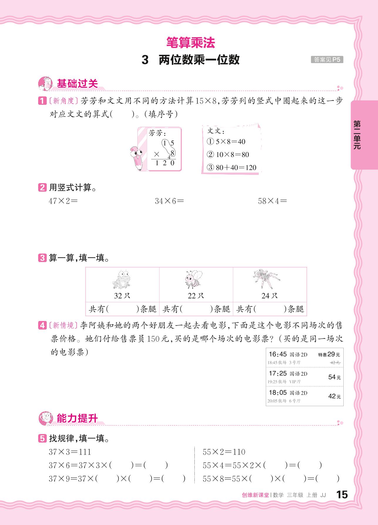 2024秋上册三年级数学冀教版 第二单元 两、三位数乘一位数——3. 两位数乘一位数