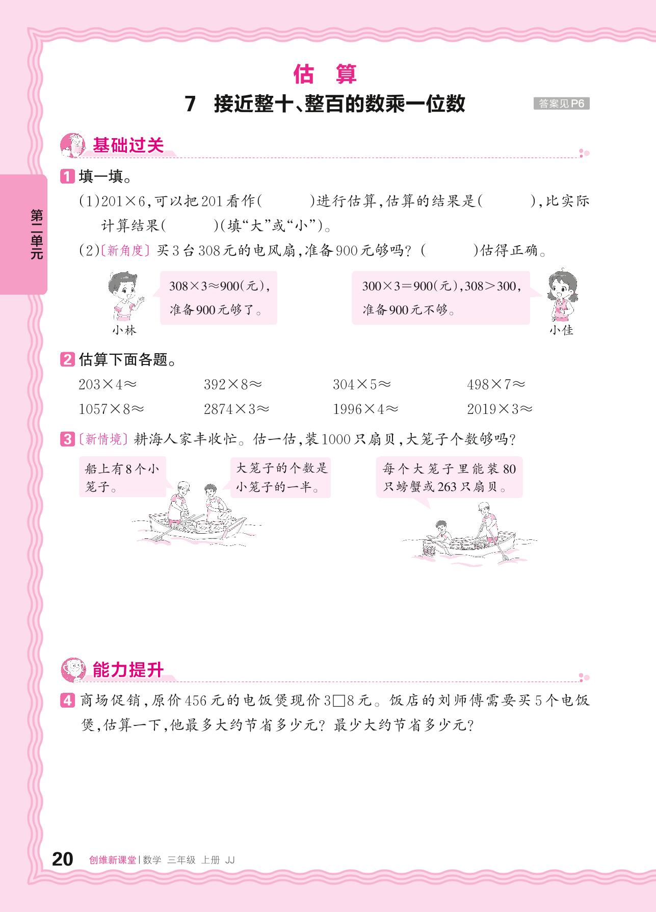 2024秋上册三年级数学冀教版 第二单元 两、三位数乘一位数——7. 接近整十、整百的数乘一位数