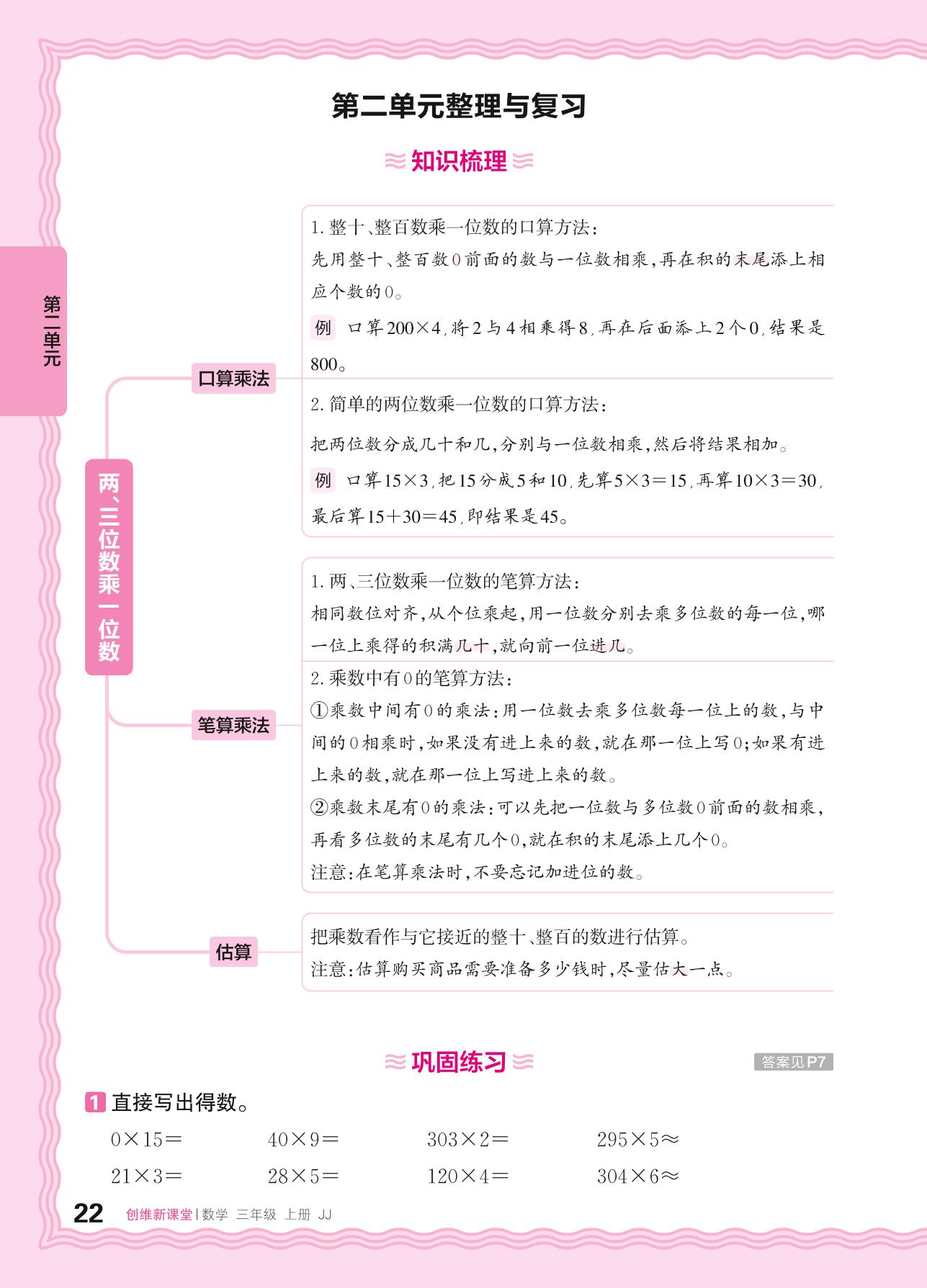 2024秋上册三年级数学冀教版 第二单元整理与复习