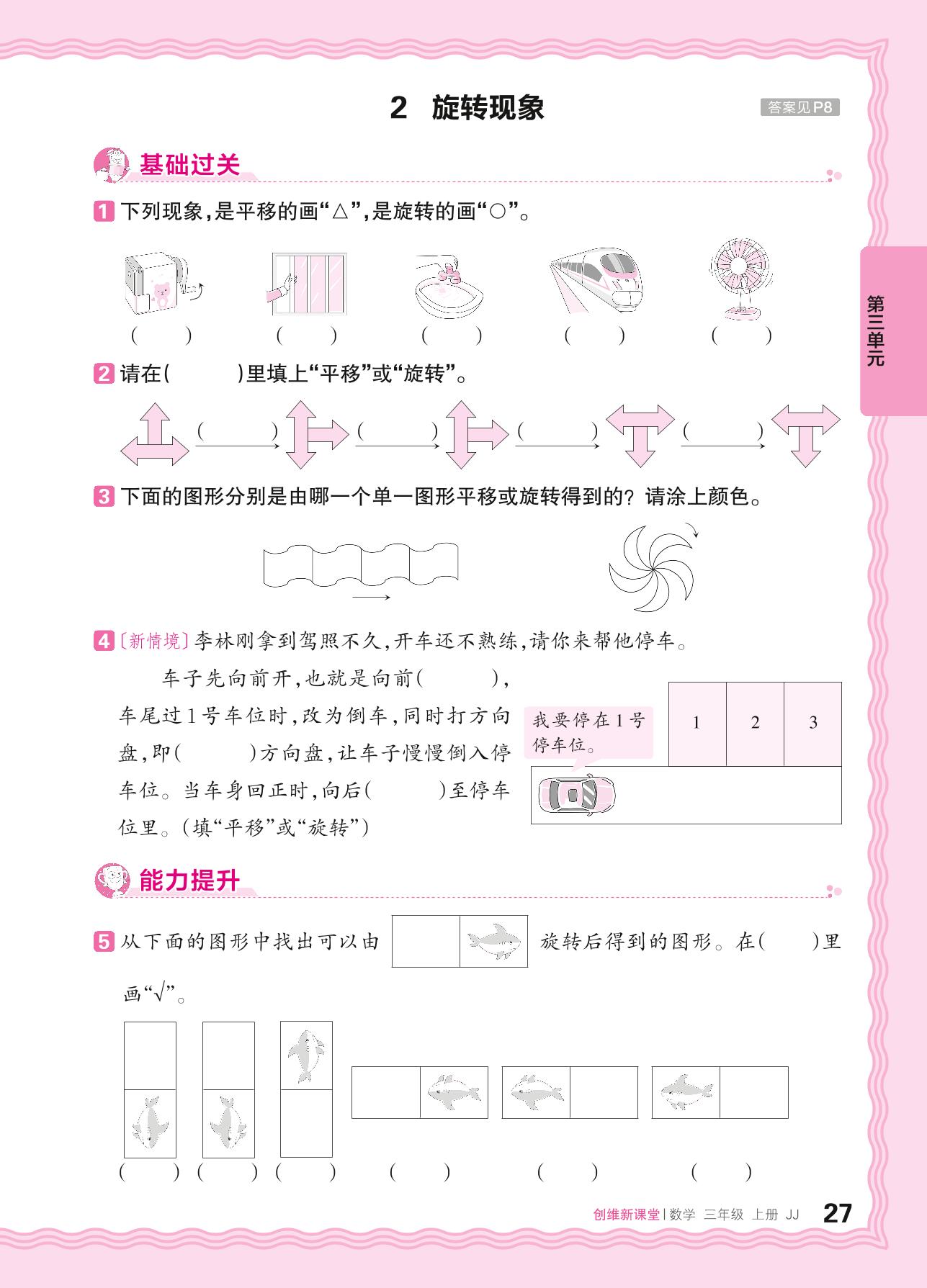 2024秋上册三年级数学冀教版 第三单元 图形的运动(一)——2. 旋转现象