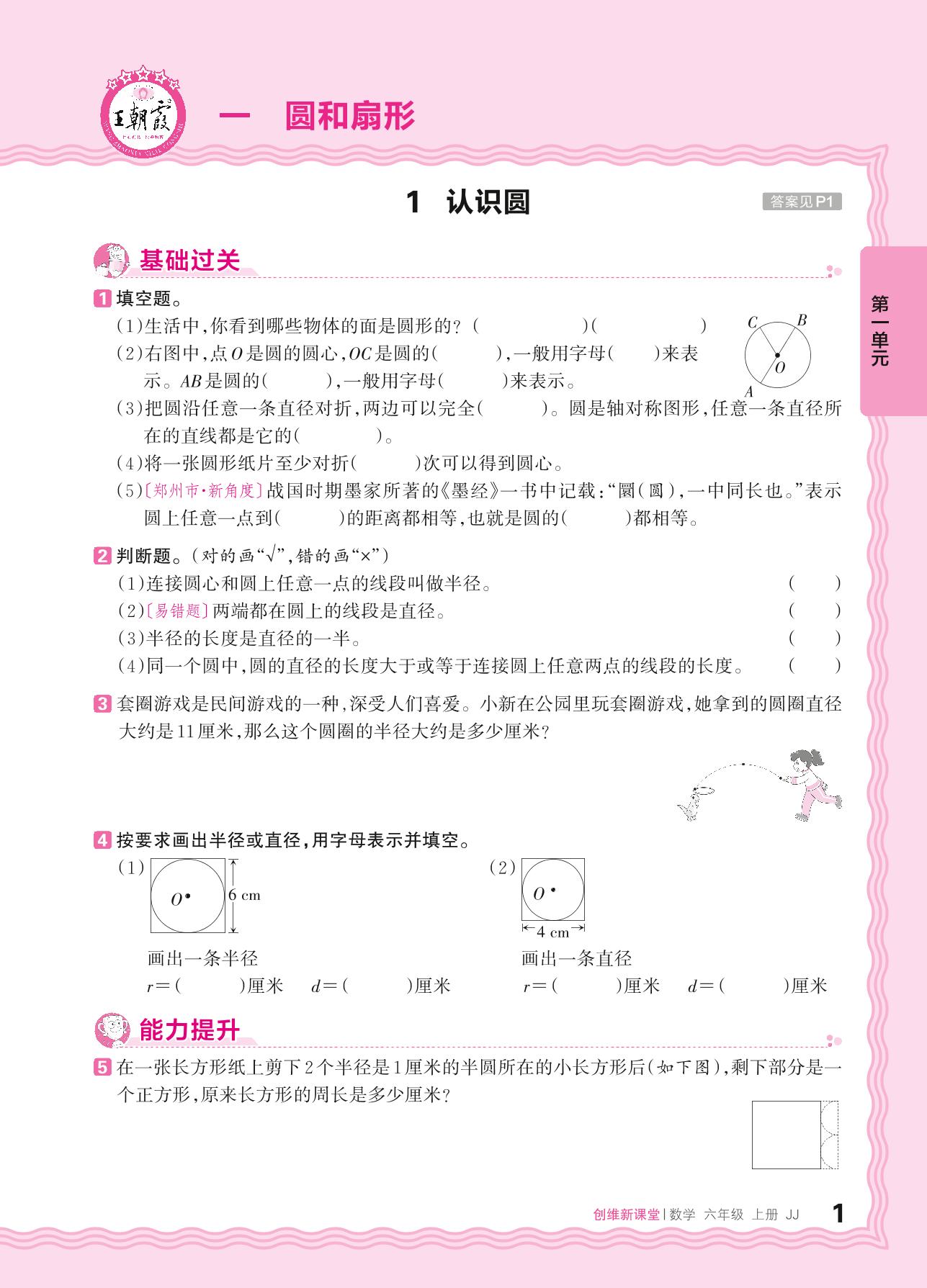 2024秋上册六年级数学冀教版 第一单元 圆和扇形——1. 认识圆