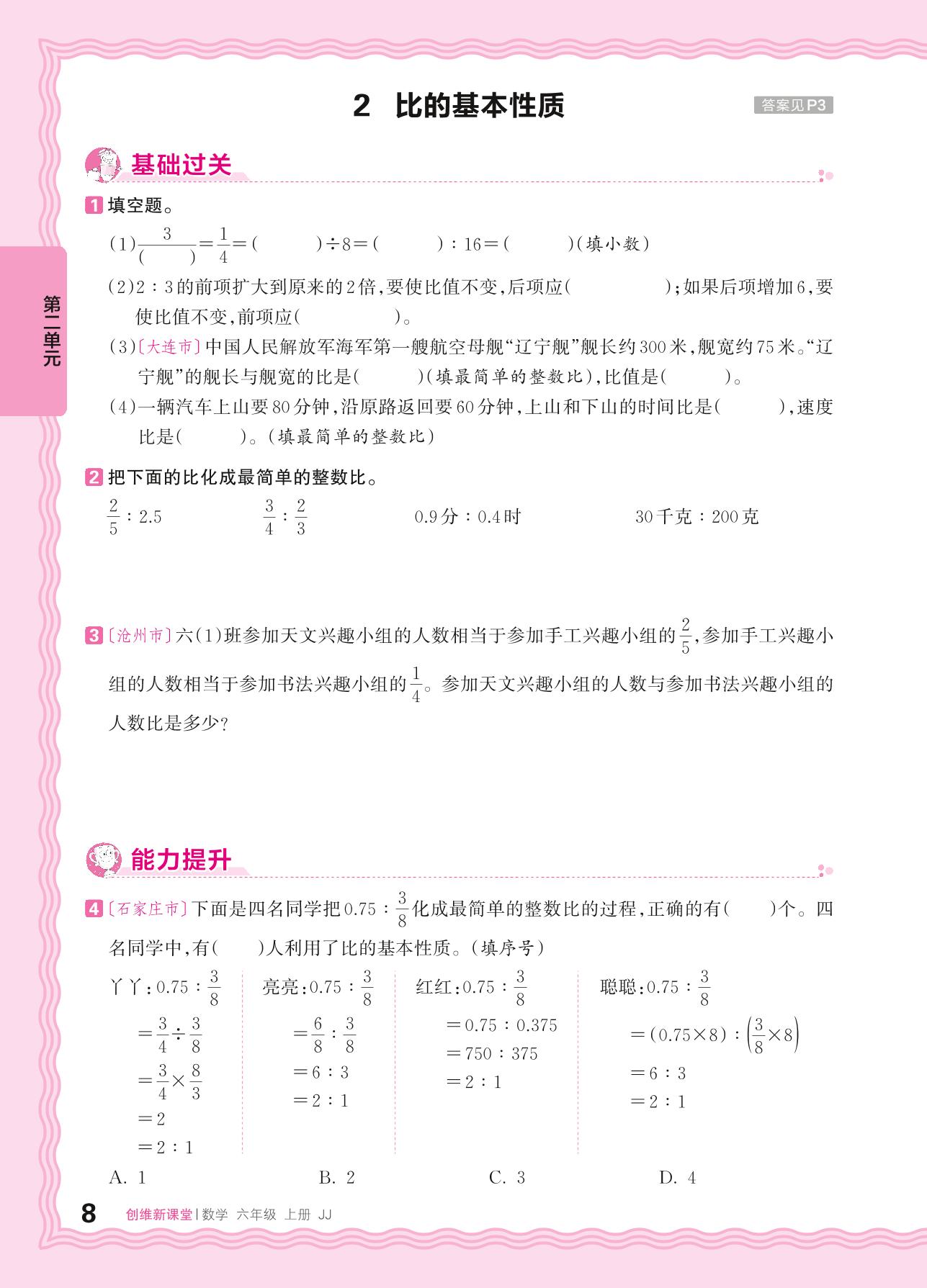 2024秋上册六年级数学冀教版 第二单元 比和比例——2. 比的基本性质