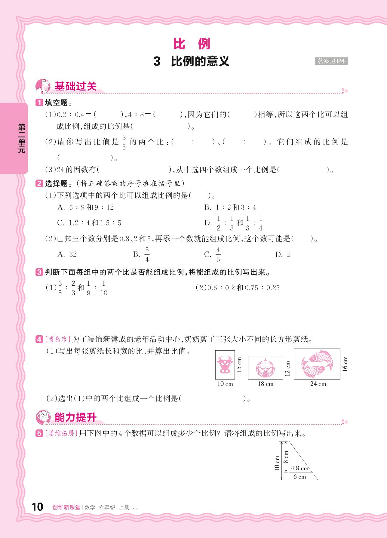 2024秋上册六年级数学冀教版 第二单元 比和比例——3. 比例的意义
