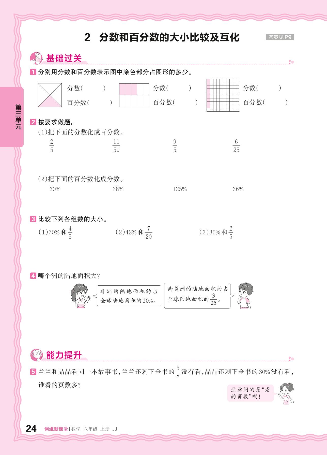 2024秋上册六年级数学冀教版 第三单元 百分数——2. 分数和百分数的大小比较及互化