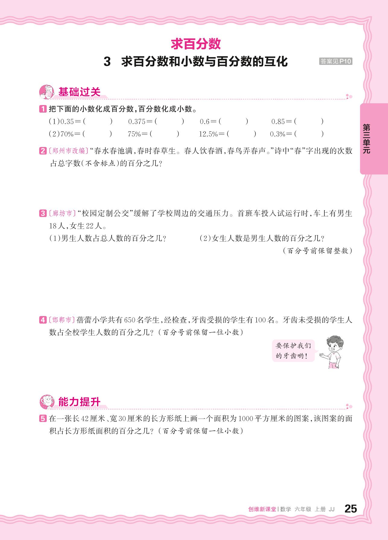 2024秋上册六年级数学冀教版 第三单元 百分数——3. 求百分数和小数与百分数的互化