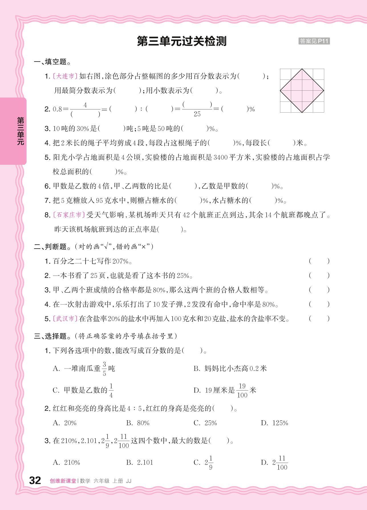 六年级数学冀教版上册单元卷