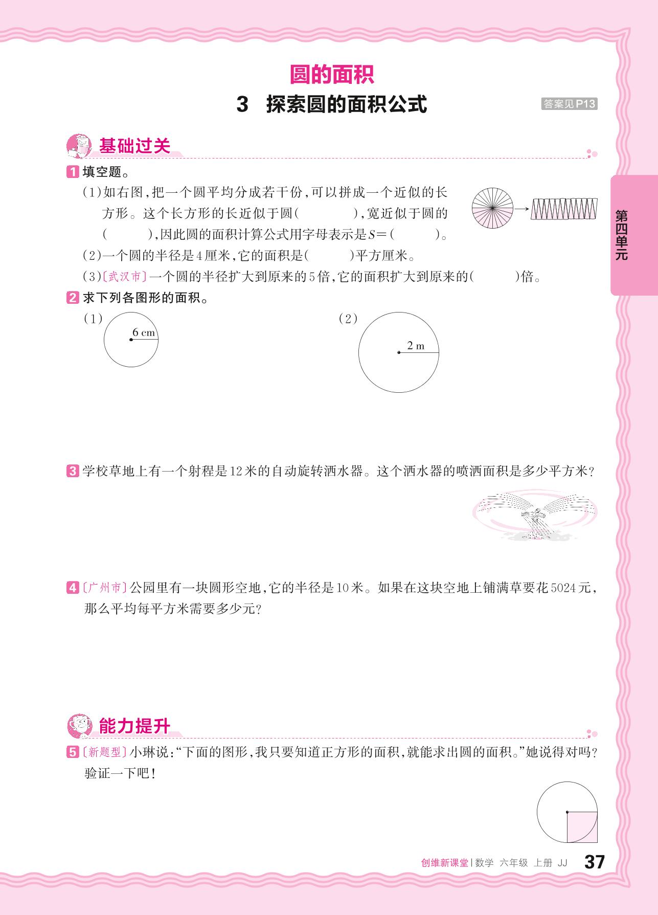 2024秋上册六年级数学冀教版 第四单元 圆的周长和面积——3. 探索圆的面积公式