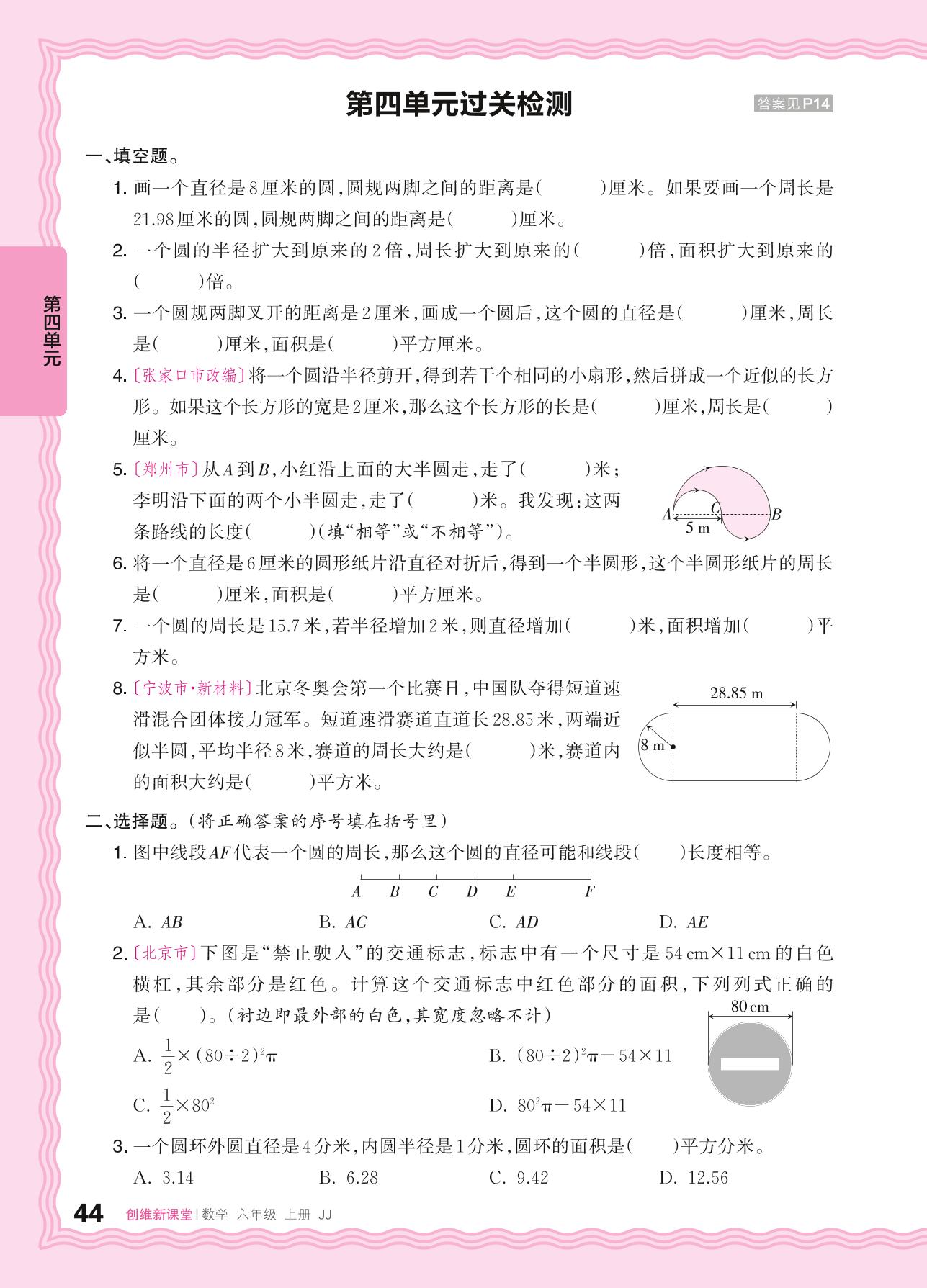 2024秋上册六年级数学冀教版 第四单元过关检测