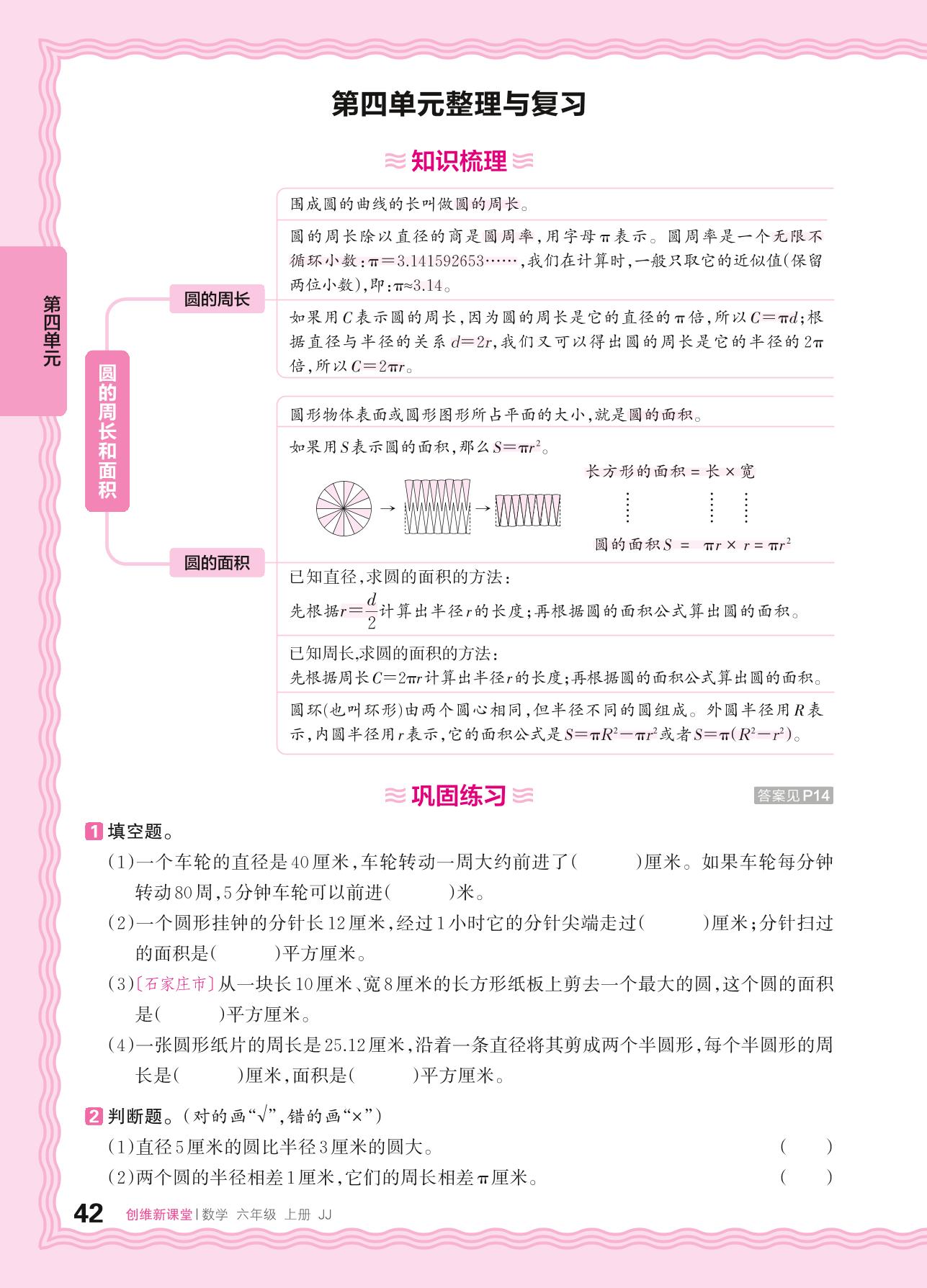 2024秋上册六年级数学冀教版 第四单元整理与复习