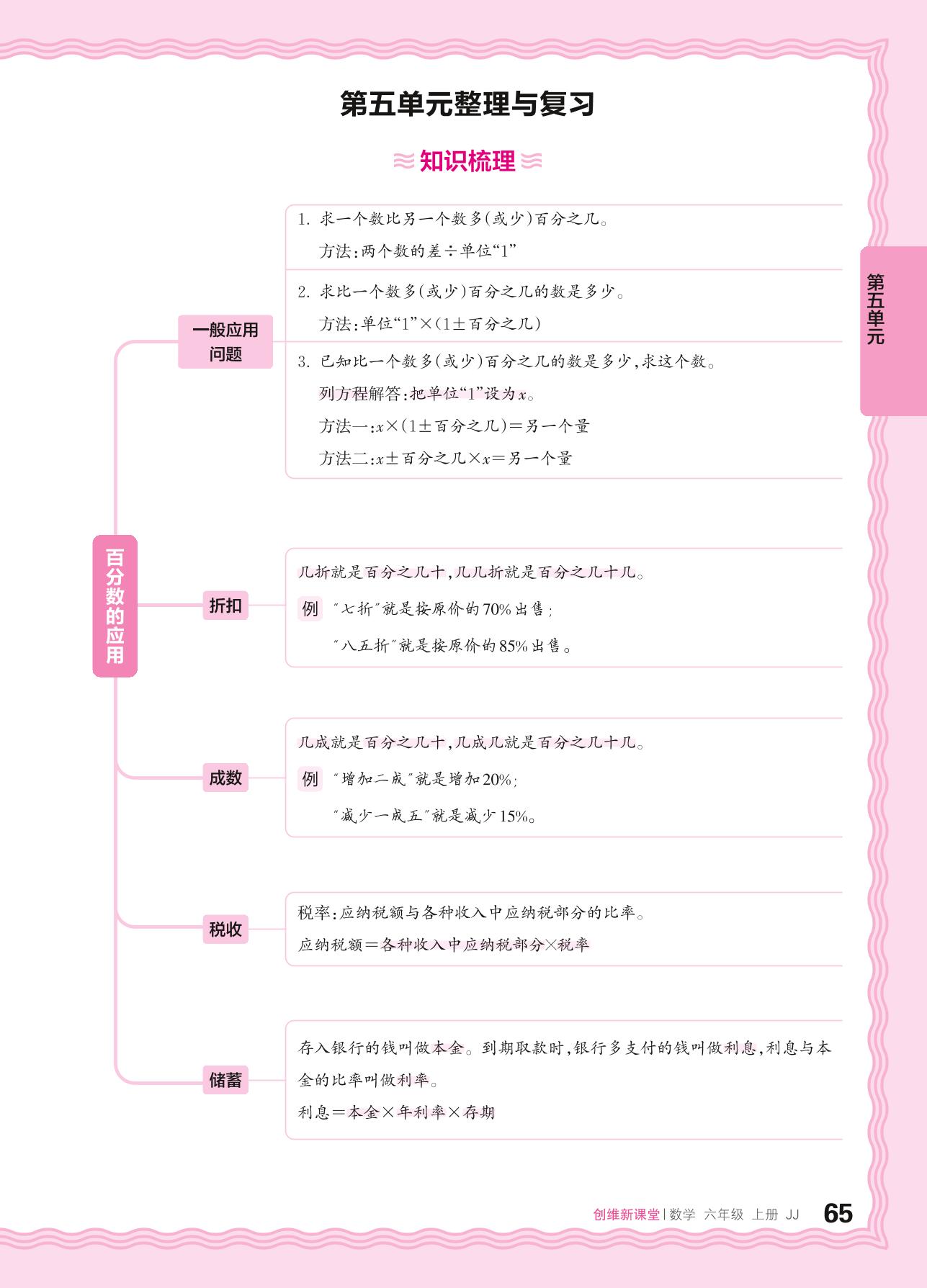 2024秋上册六年级数学冀教版 第五单元整理与复习