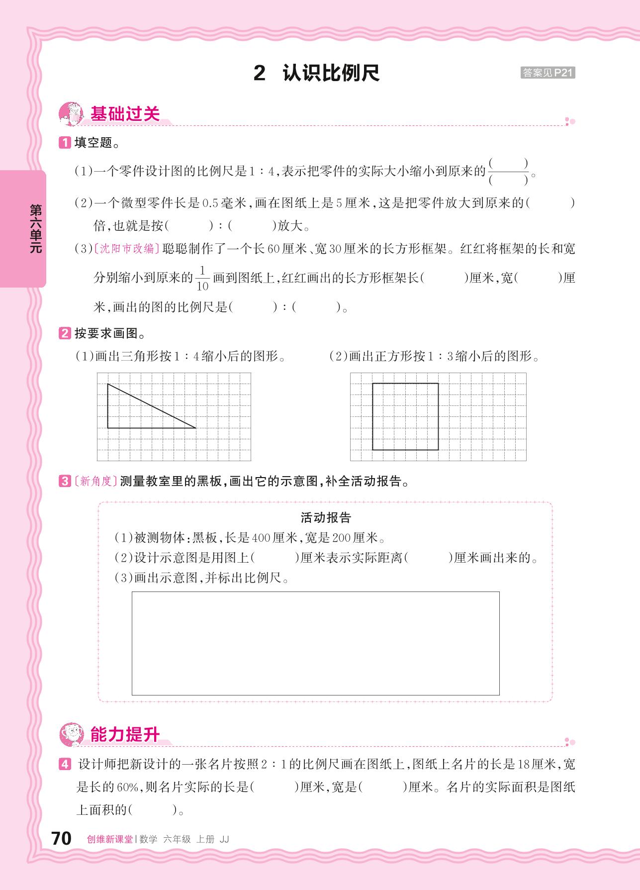 2024秋上册六年级数学冀教版 第六单元 比例尺——2. 认识比例尺