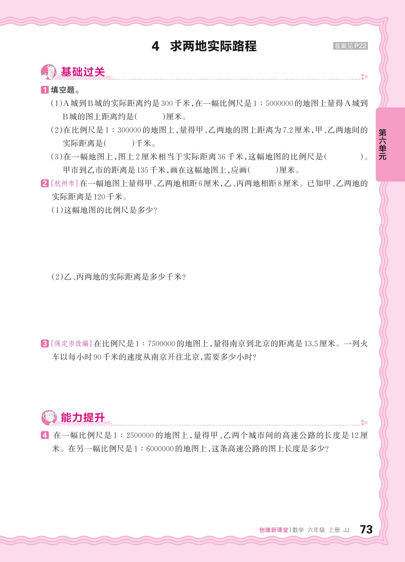2024秋上册六年级数学冀教版 第六单元 比例尺——4. 求两地实际路程