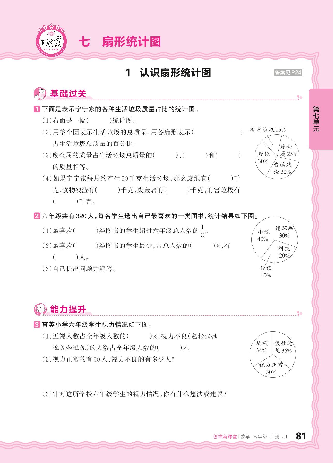 2024秋上册六年级数学冀教版 第七单元 扇形统计图——1. 认识扇形统计图