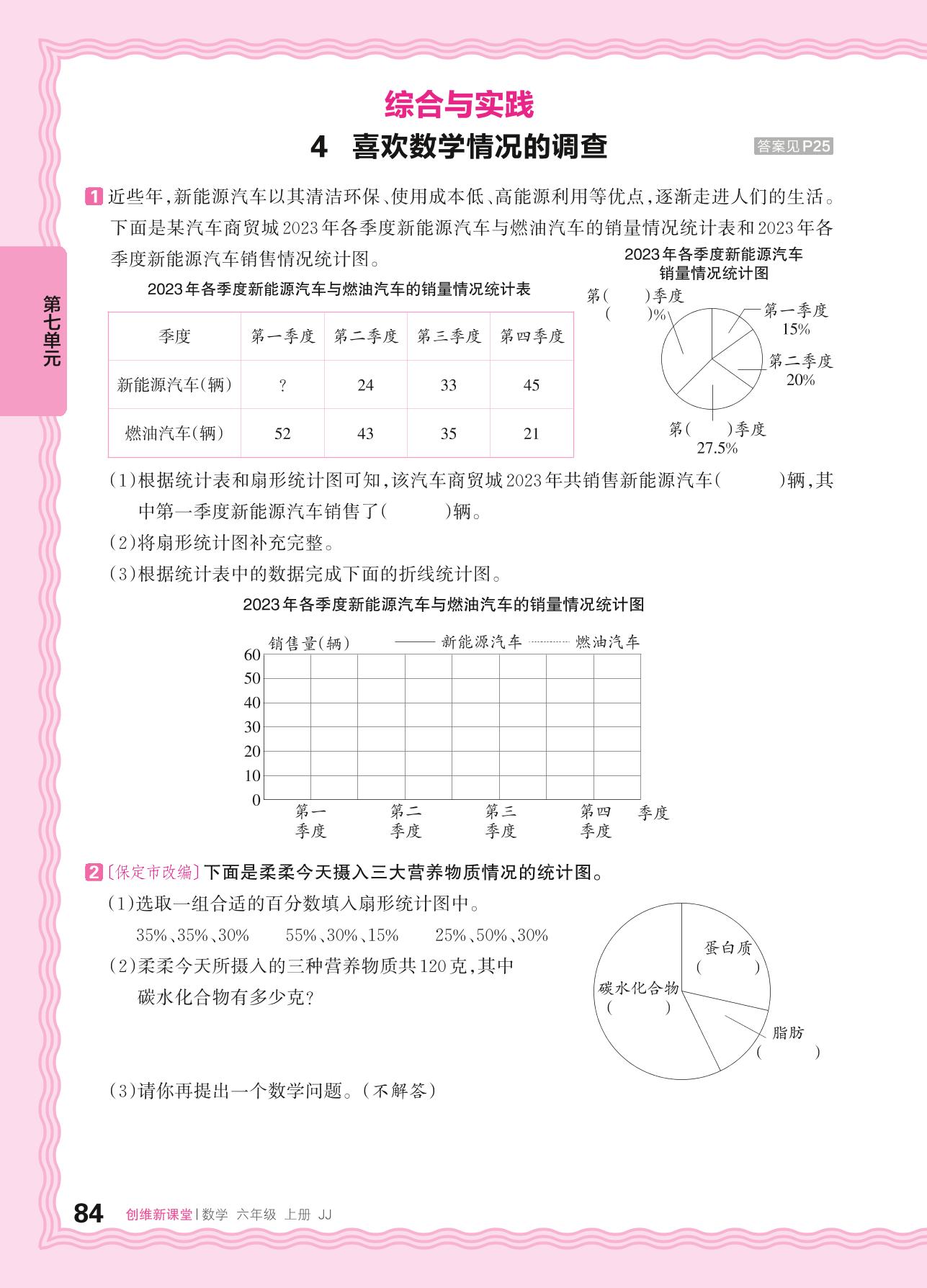 2024秋上册六年级数学冀教版 第七单元 扇形统计图——4. 喜欢数学情况的调查