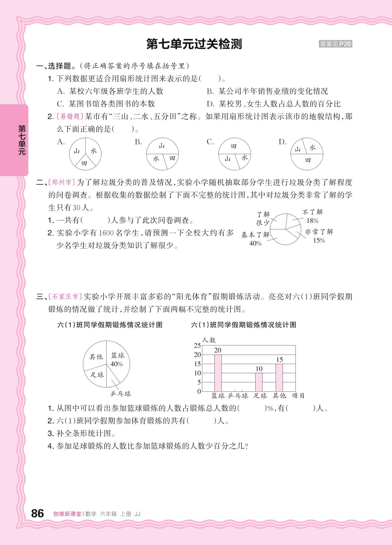 2024秋上册六年级数学冀教版 第七单元过关检测