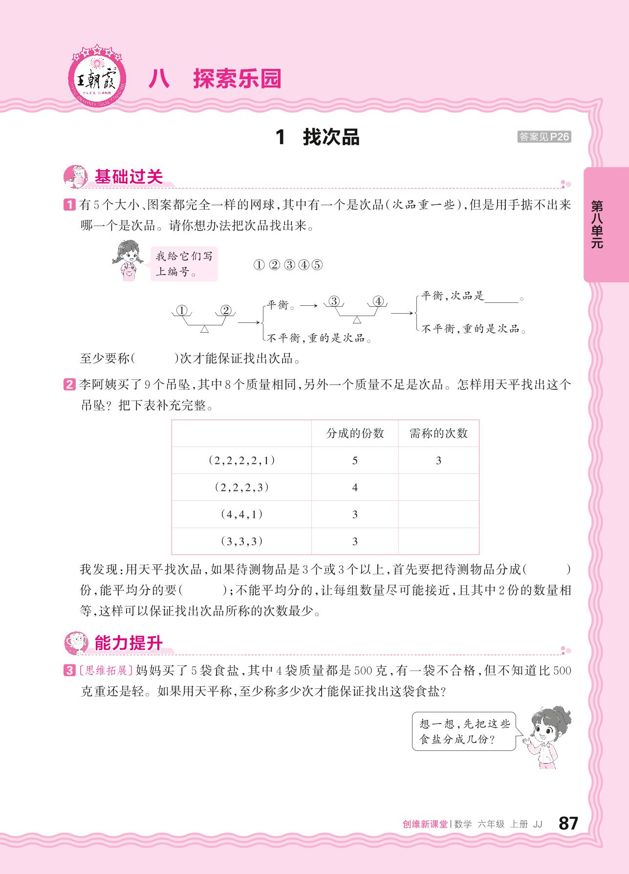 2024秋上册六年级数学冀教版 第八单元 探索乐园——1. 找次品