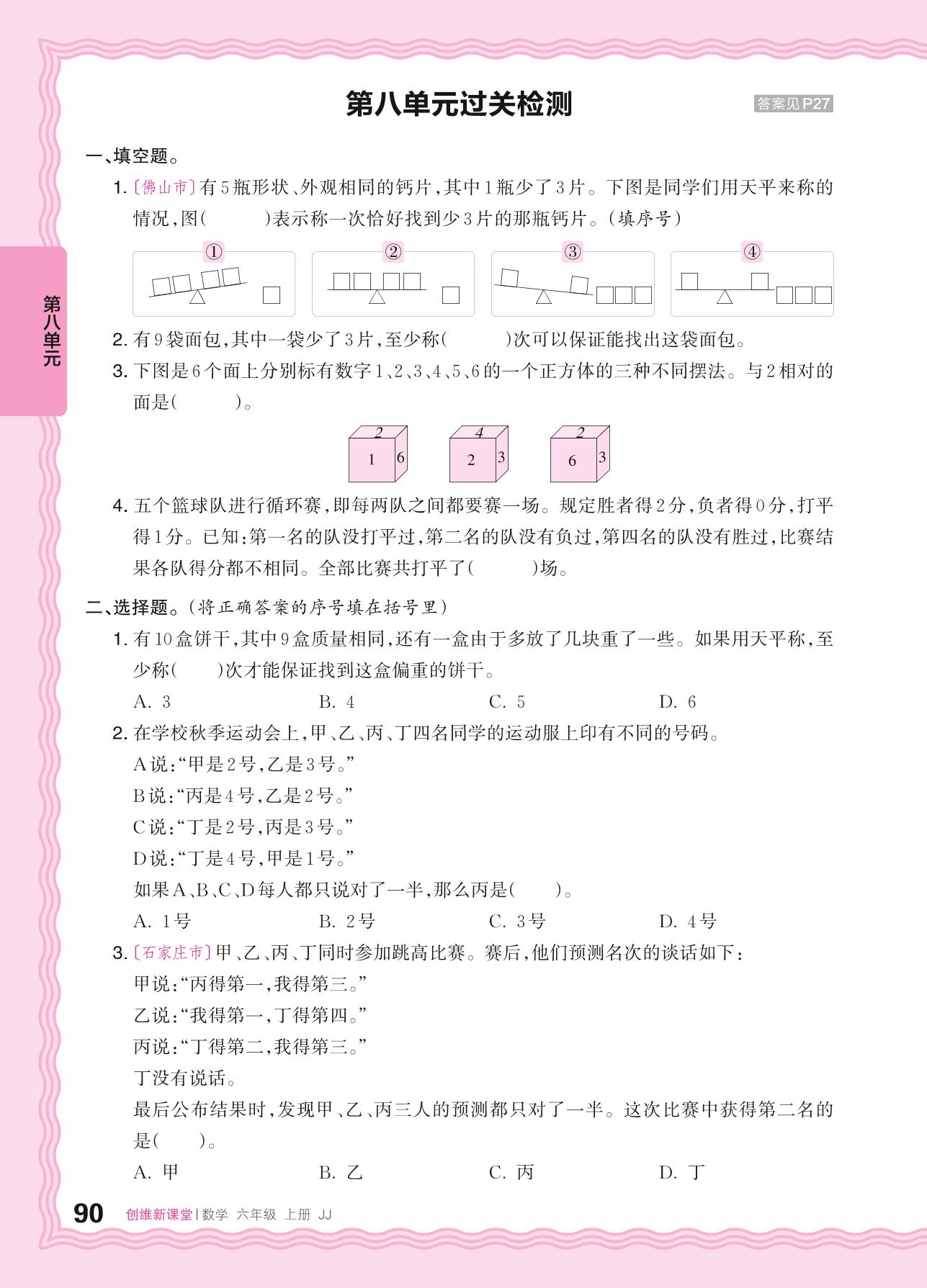 2024秋上册六年级数学冀教版 第八单元过关检测