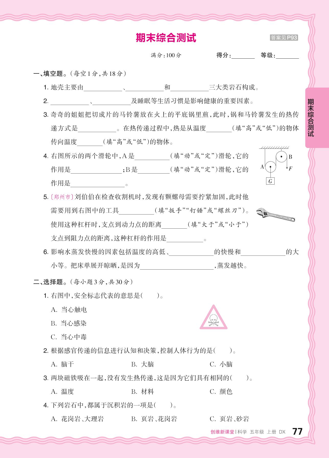 2024秋上册五年级科学大象版 期末综合测试_R240816141335029