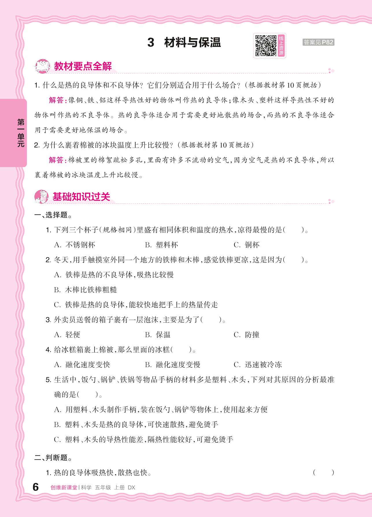 2024秋上册五年级科学大象版 第一单元 冰淇淋冷藏箱——3. 材料与保温