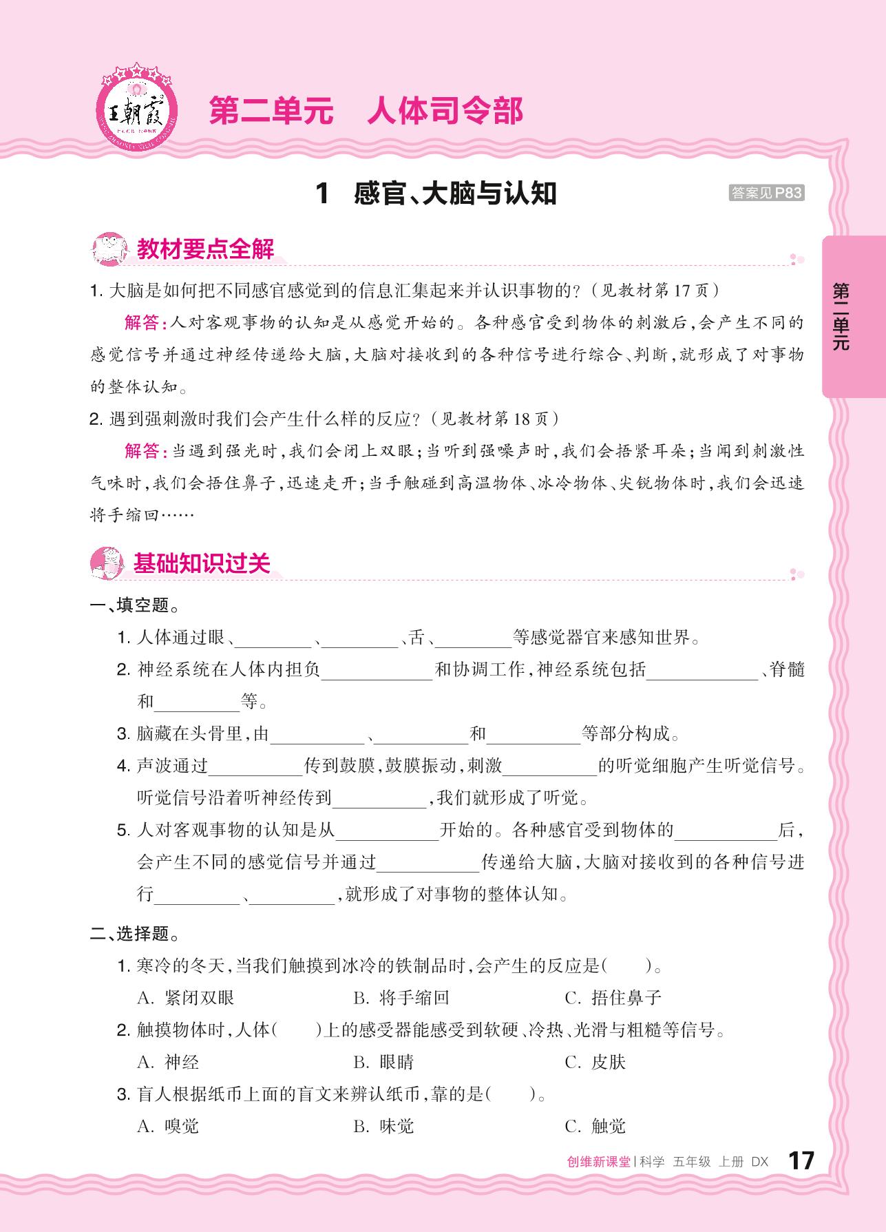 2024秋上册五年级科学大象版 第二单元 人体司令部——1. 感官、大脑与认知