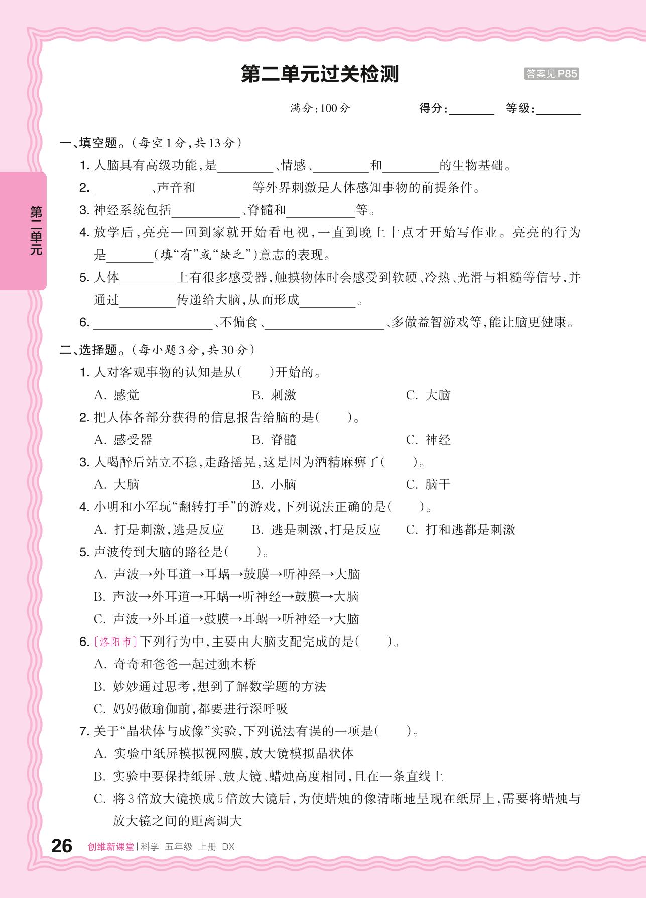 五年级科学大象版上册单元卷