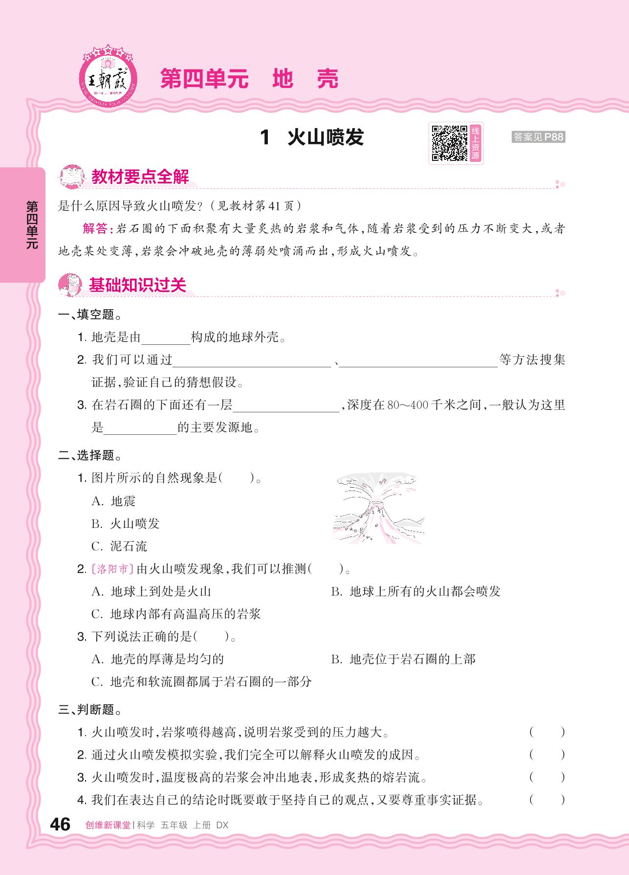 2024秋上册五年级科学大象版 第四单元 地壳——1. 火山喷发