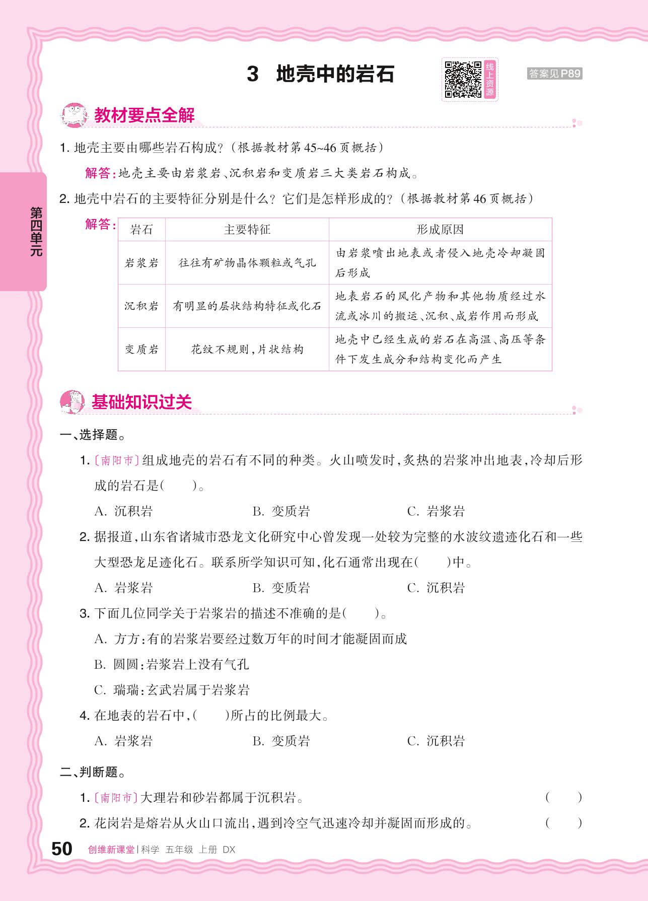 2024秋上册五年级科学大象版 第四单元 地壳——3. 地壳中的岩石
