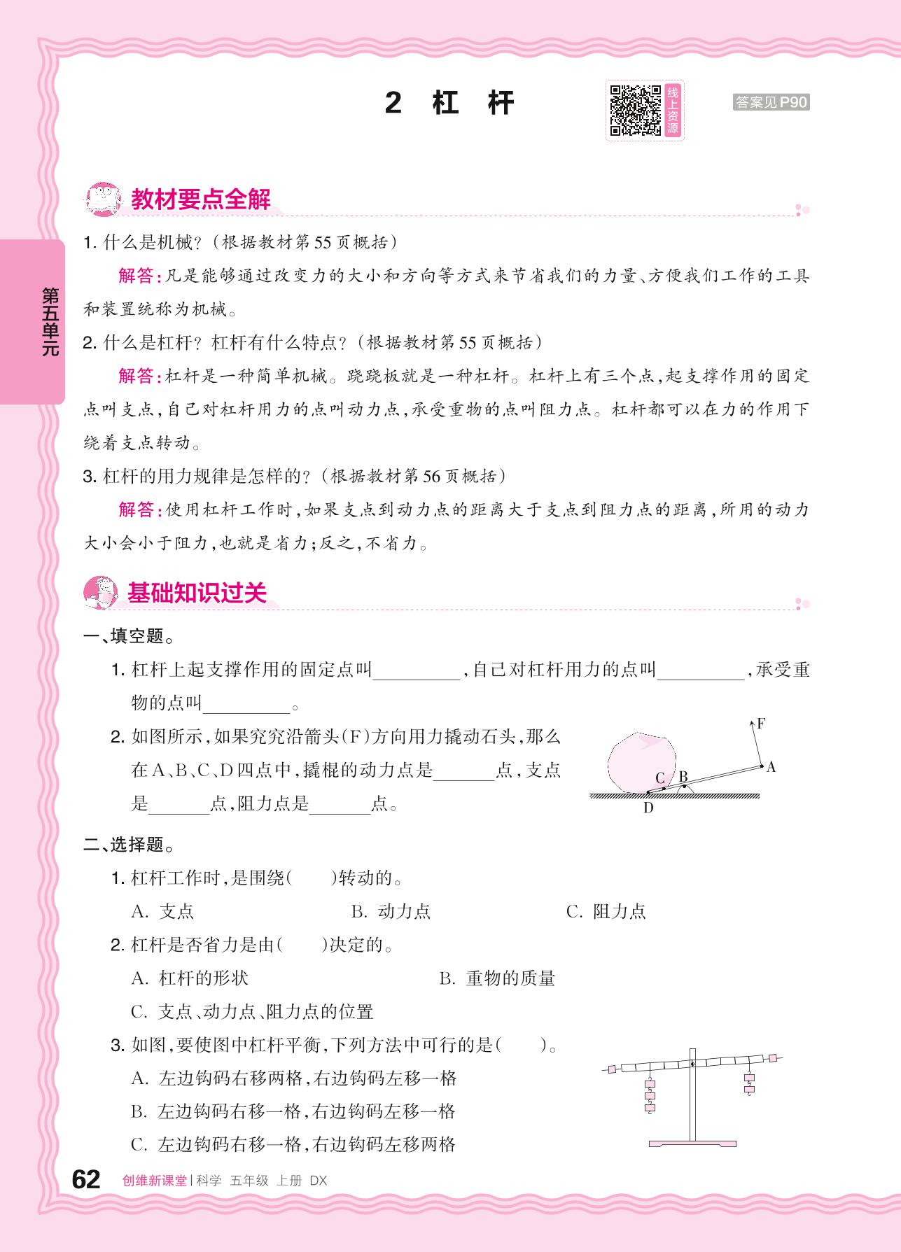 2024秋上册五年级科学大象版 第五单元 小小机械师——2. 杠杆