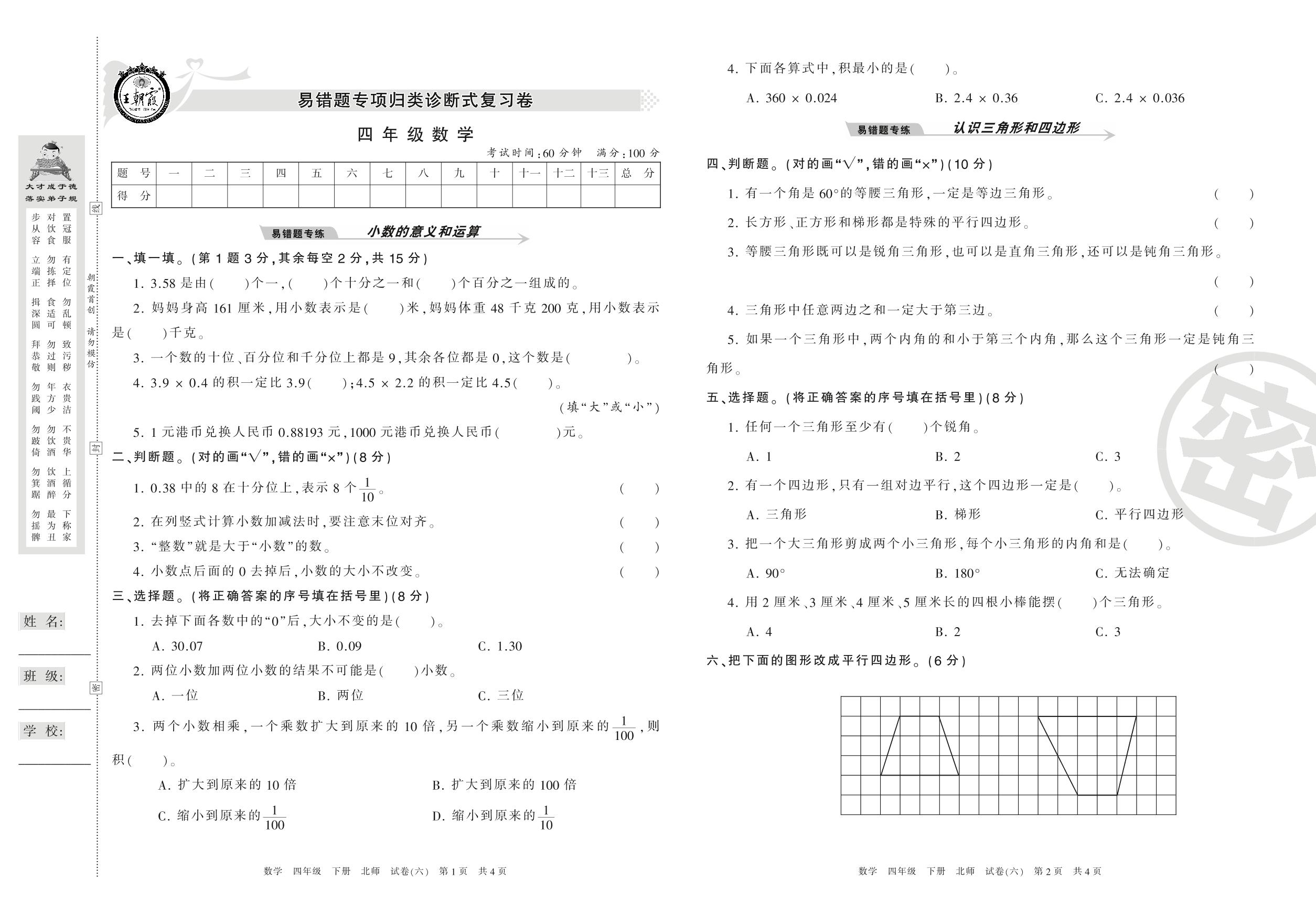王朝霞期末专项卷四年级下册数学(北师版)_R210804152707【6】