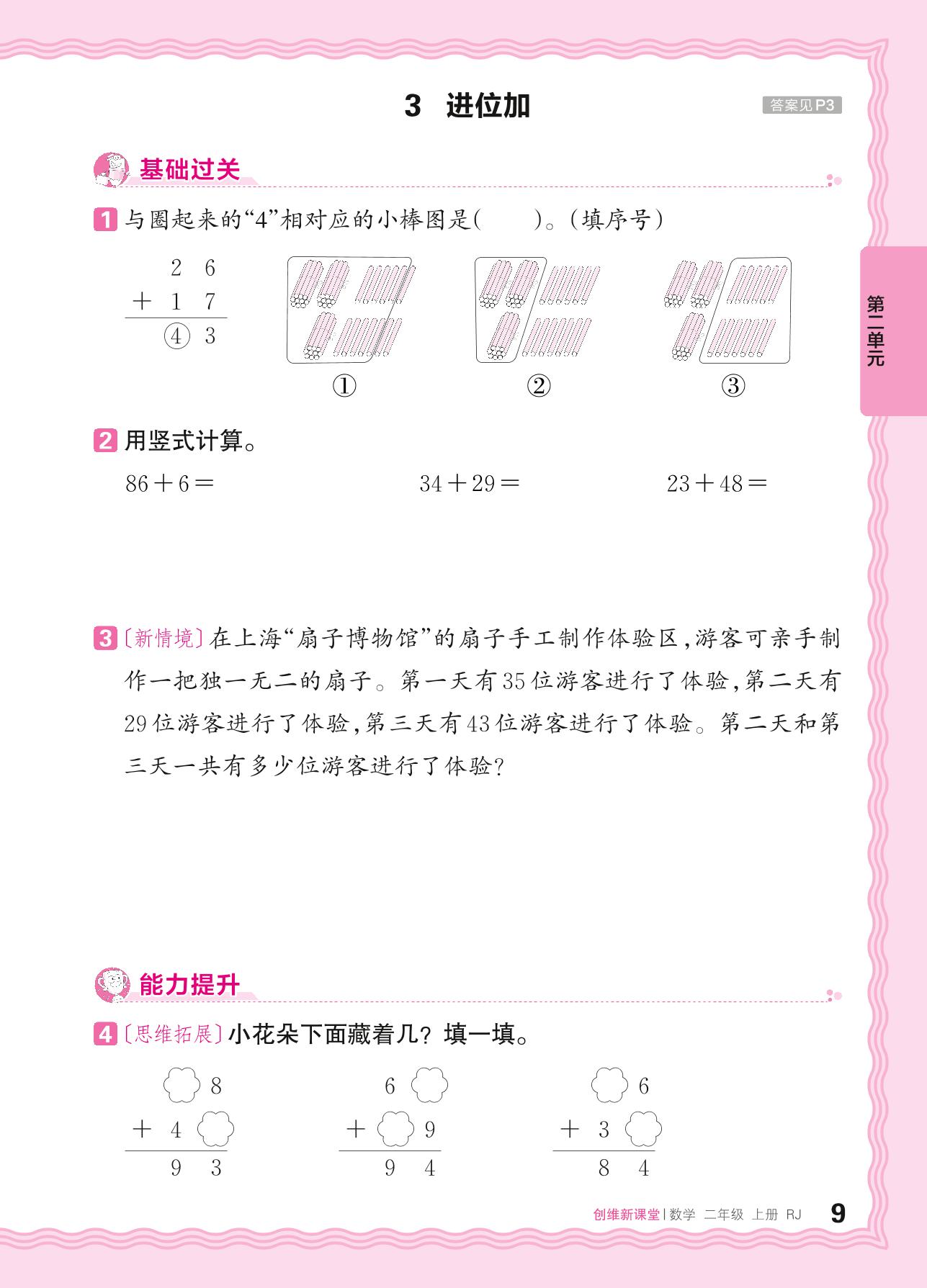 2024秋上册二年级数学人教版 第二单元 100以内的加法和减法(二)——3. 进位加