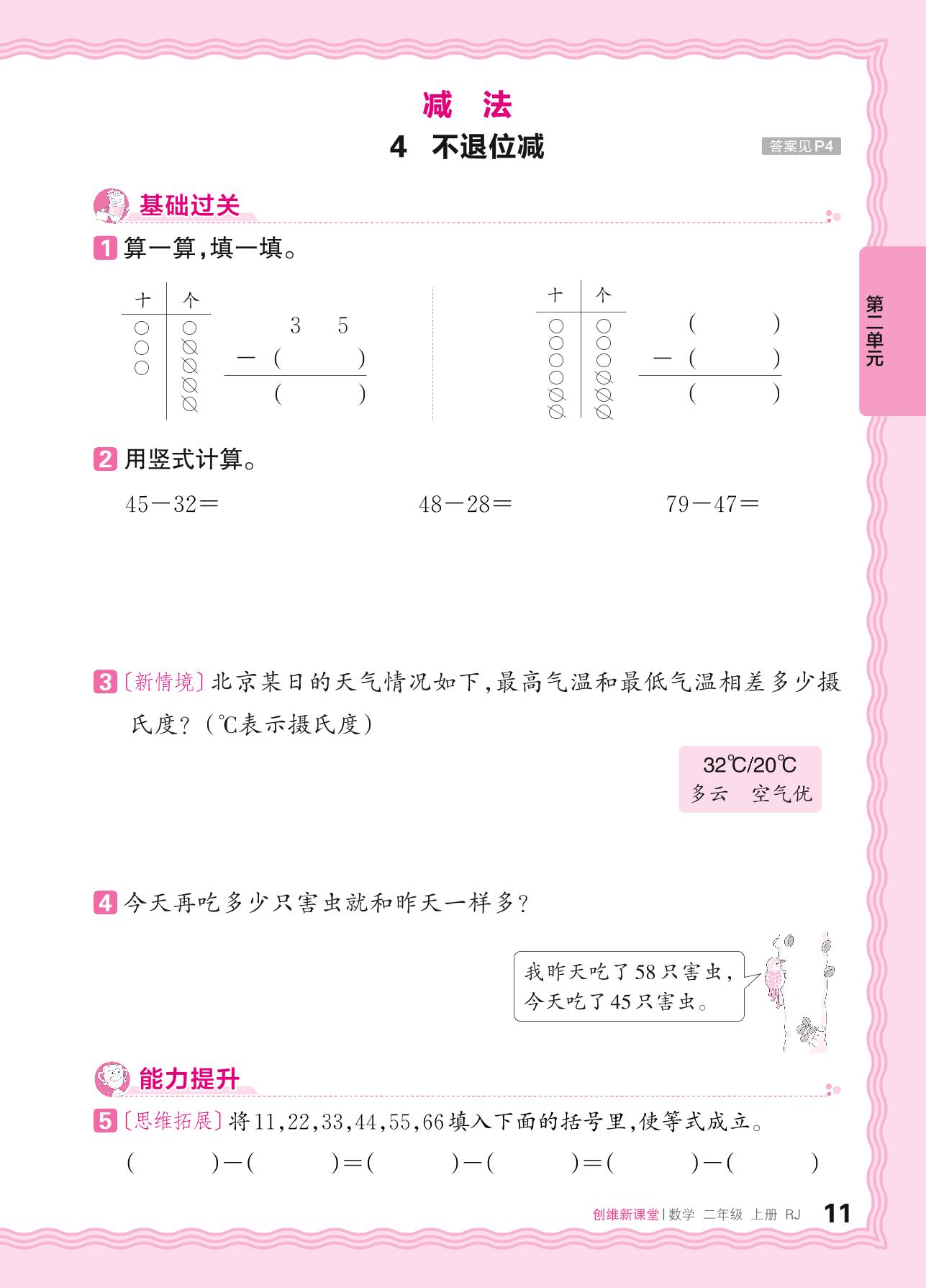 2024秋上册二年级数学人教版 第二单元 100以内的加法和减法(二)——4. 不退位减_R240816143436482